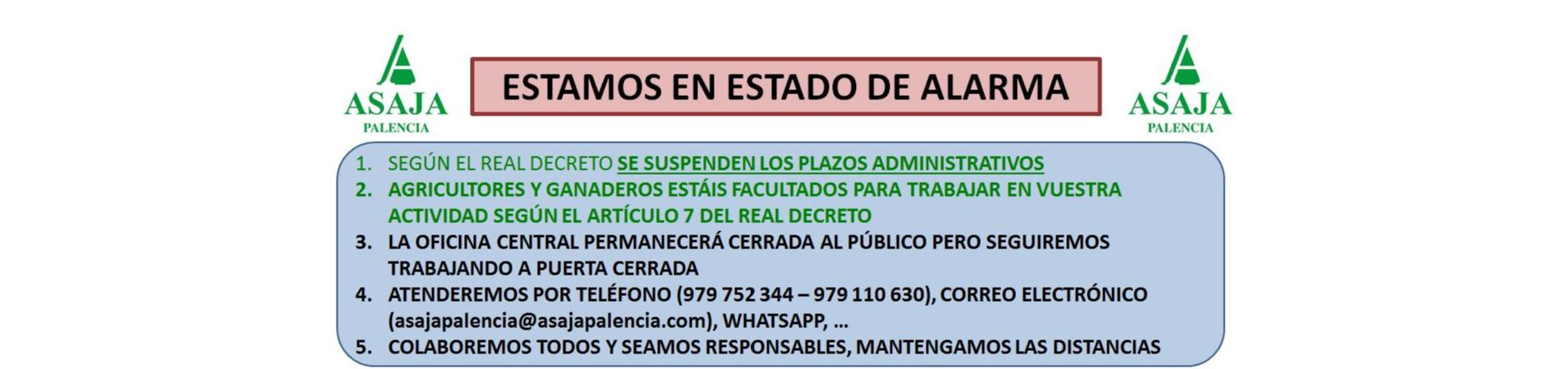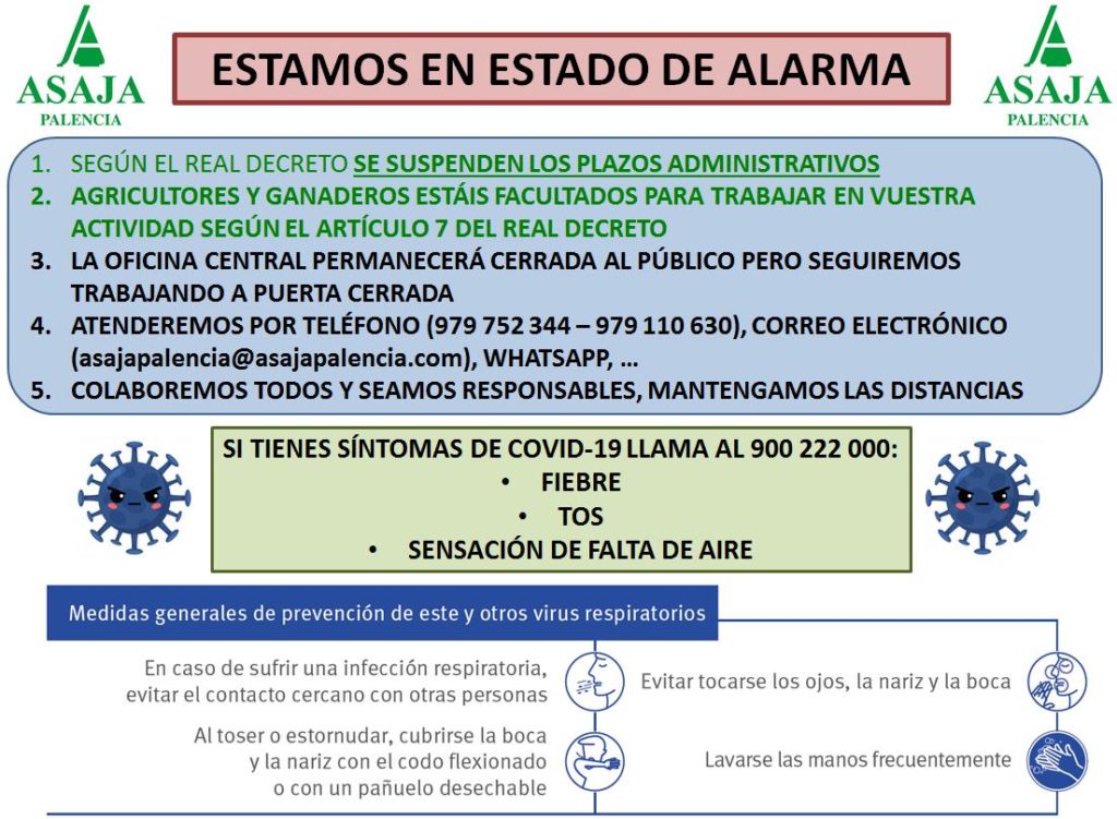 Inicio ASAJA Palencia informa Noticias Estado de alarma: aviso para agricultores y ganaderos