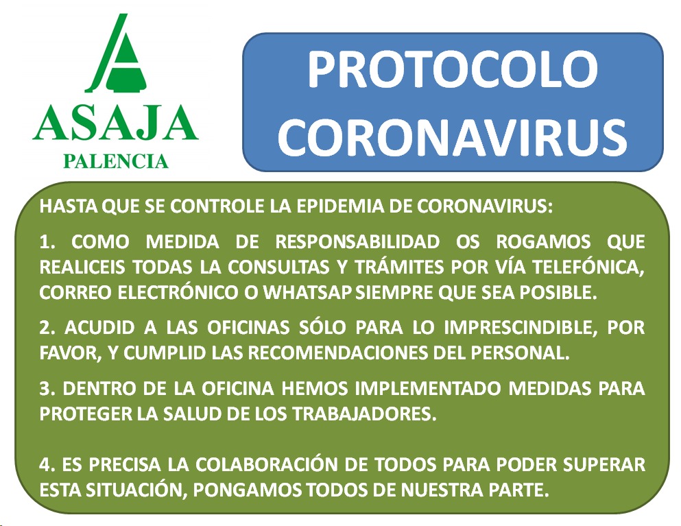 Inicio ASAJA Palencia informa Noticias Medidas preventivas en las oficinas de ASAJA Palencia ante la epidemia de...