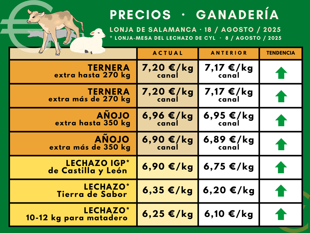 La Lonja de Salamanca ha celebrado hoy su sesión semanal donde se han confirmado nuevas alzas en la Mesa de Vacuno de Carne, tanto para machos como hembras.
