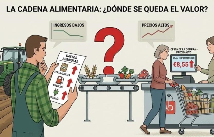 En medio de este escenario aparece una paradoja que se repite con demasiada frecuencia. Cuando suben los costes de producción, el agricultor y el ganadero rara vez pueden repercutir ese incremento en el precio que reciben. Sin embargo, el consumidor termina pagando alimentos más caros.