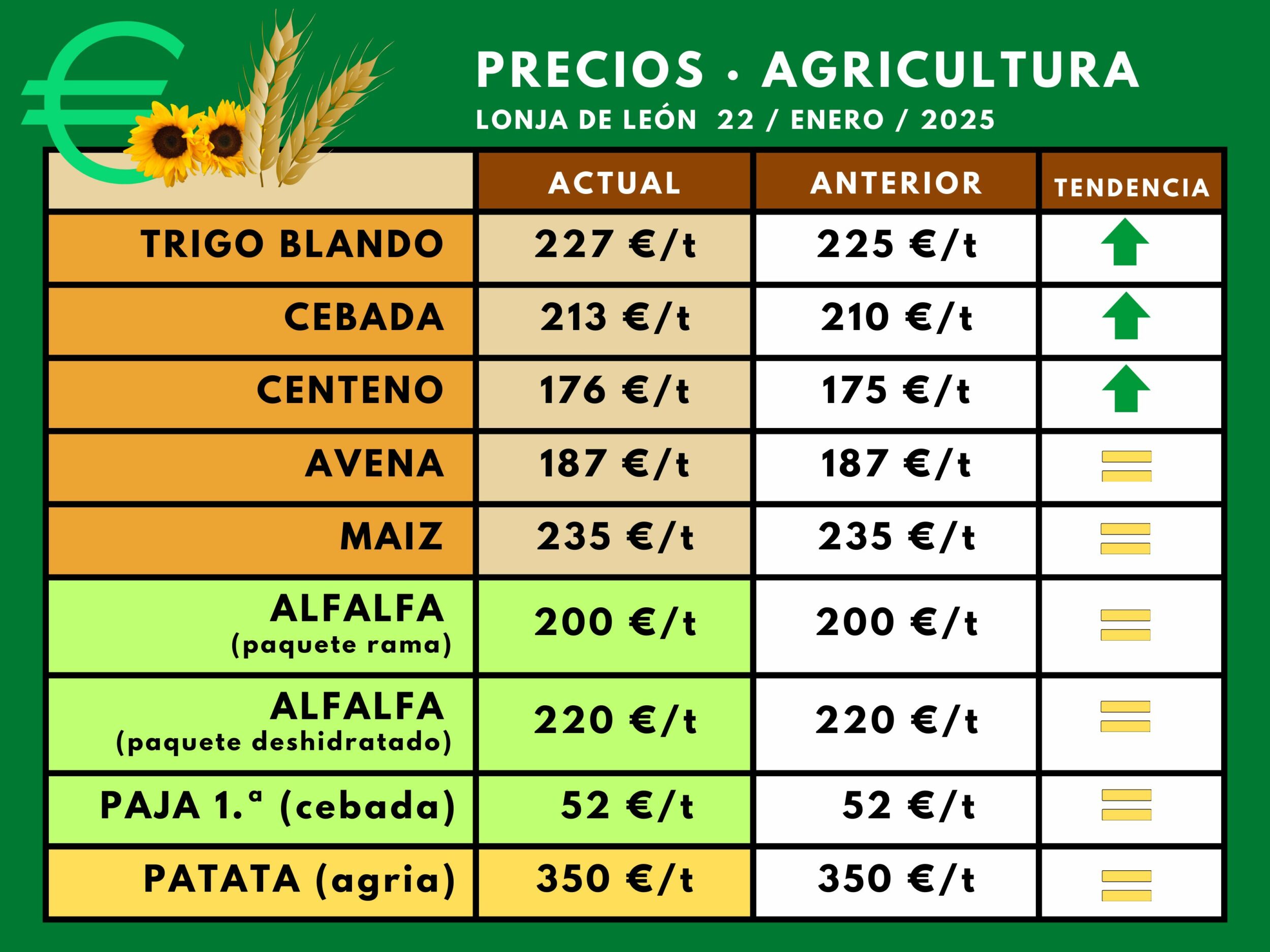 Inicio Retoque al alza de los cereales en una Lonja de León a la expectativa tras el relevo en la Casa Blanca Precios-agricultura-22ene2025