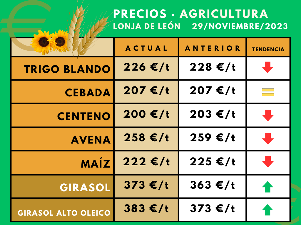 En la sesión de la Lonja de León celebrada este miércoles, 29 de noviembre, se ha registrado una subida de diez euros en la cotización de la tonelada de girasol, tanto el convencional como el alto oleico. Según la lonja leonesa, el incremento viene motivado por la fortaleza de la soja, que sigue tensionada en los mercados, debido a las incertidumbres climáticas tanto en Argentina como en Brasil.