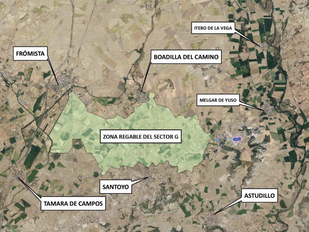 Hasta el día 4 de mayo permanecerá expuesto a información pública el «Estudio de Impacto Ambiental y Proyecto de Modernización del Regadío en la Comunidad de Regantes del Canal del Pisuerga», en lo concerniente al «Sector G» -con un nada desdeñable presupuesto base de licitación de 29,3 millones de euros-, en el que se encuentra superficie regable de los municipios de Santoyo (1.759 ha), Boadilla del Camino (491 ha) y Frómista (592 ha), actualmente también en proceso de concentración parcelaria. Por su parte, la balsa de almacenamiento (326.000 m3), la de regulación (42.000 m3) y la estación de bombeo se ubicarán en el término municipal de Melgar de Yuso.