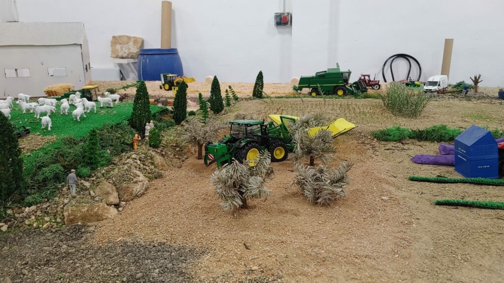 AL DETALLE. Su trabajo en equipo ha logrado reunir más de trescientas maquetas, algunas originales, otras modificadas para ganar en realismo, y otras fabricadas expresamente con impresoras 3D. Gracias a ello, los visitantes pueden presenciar con detalle decenas de labores del campo, desde el arado a la cosecha y la siega, pasando por diversas fases de cultivos diversos (cereales, remolacha, girasol, plantas aromáticas…) Asimismo, se ofrecen instalaciones ganaderas con diversidad de animales para completar un curioso panorama de nuestro mundo rural más vinculado con el sector primario.