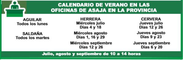 Calendario de verano 2018 en las oficinas de Asaja Palencia