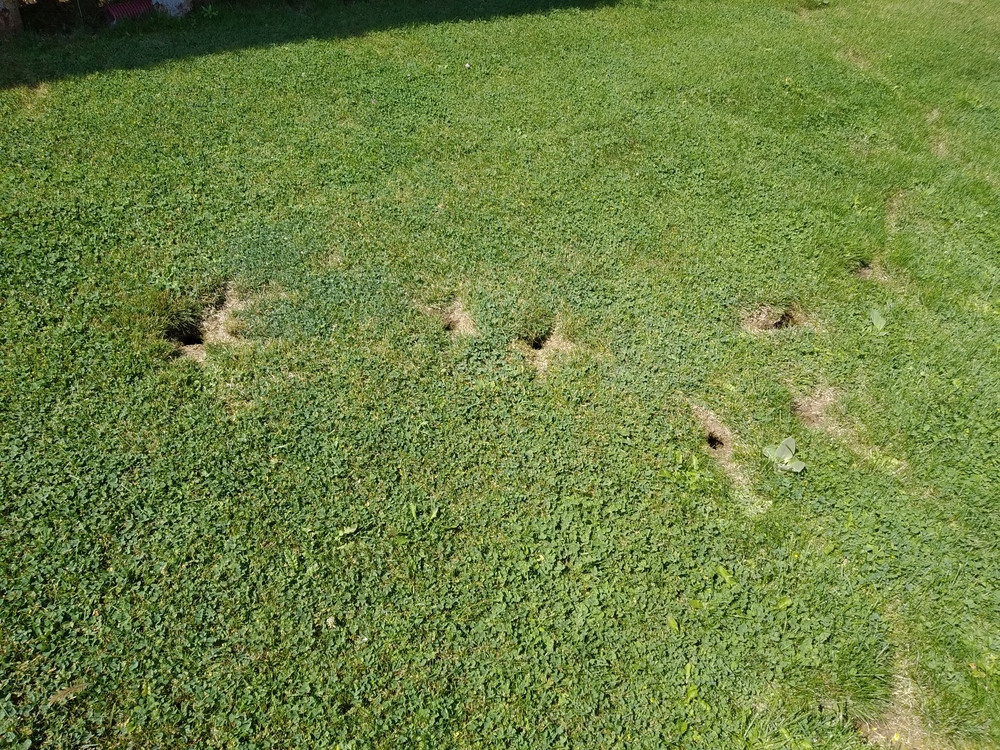 Nestar (20/08/2019). Galerías realizadas por los topillos en una pradera de montaña, los topillos ya están implantados en toda la provincia.