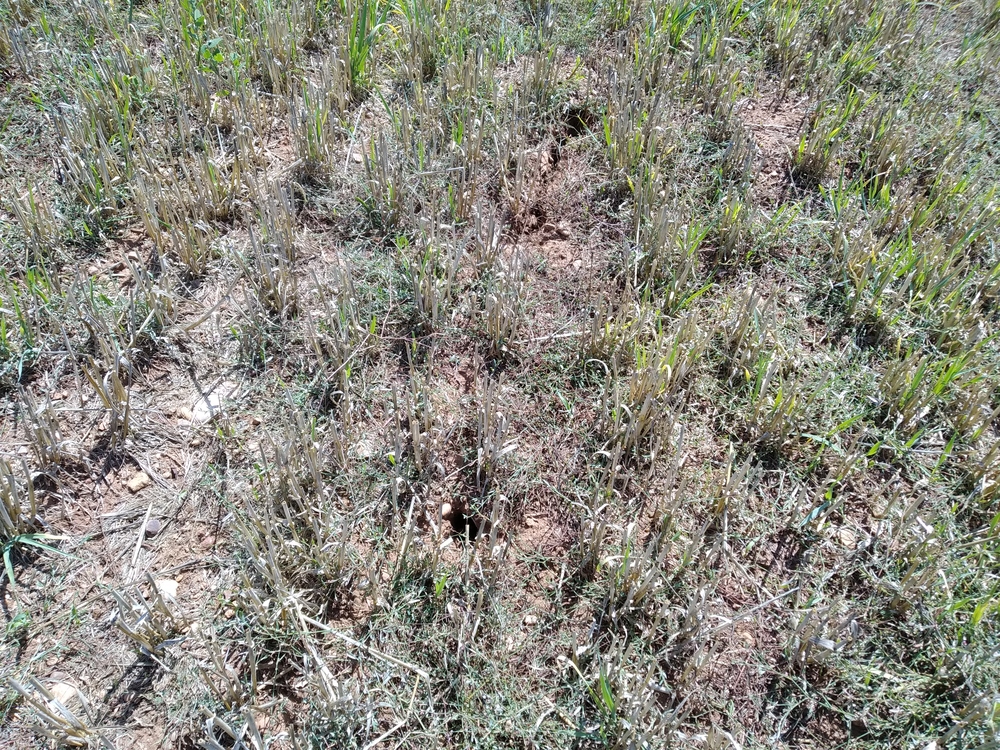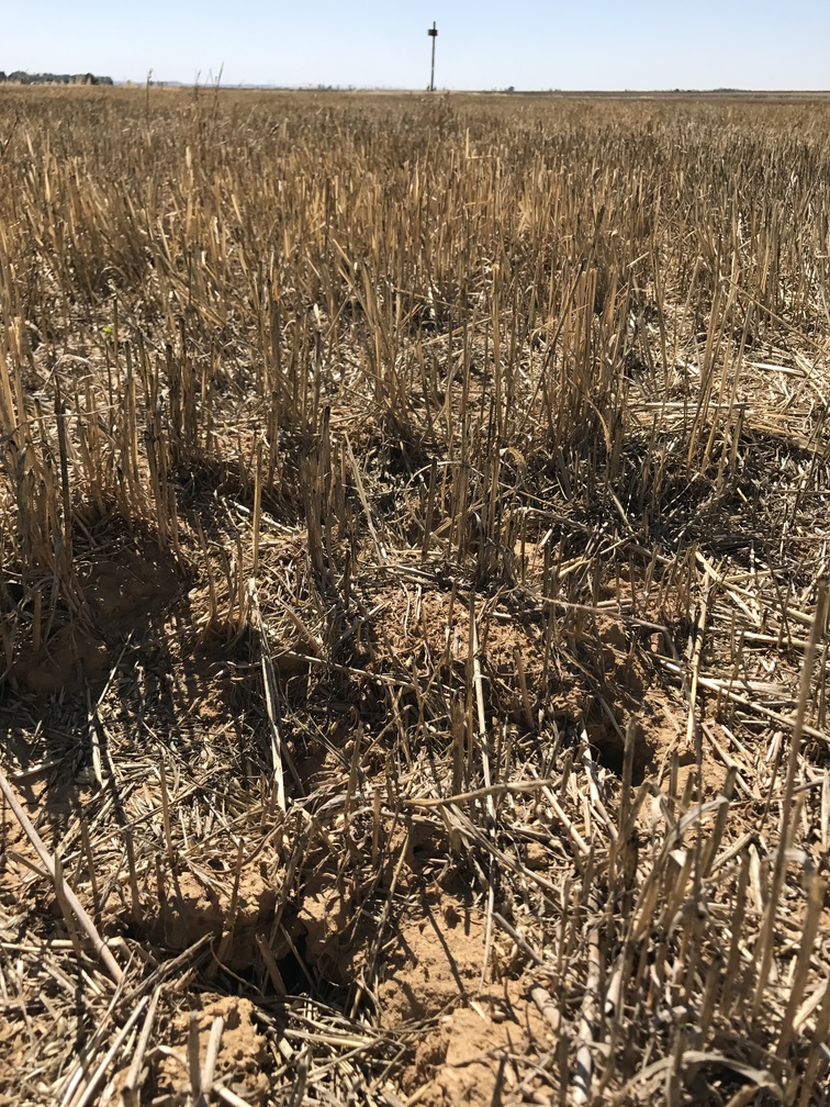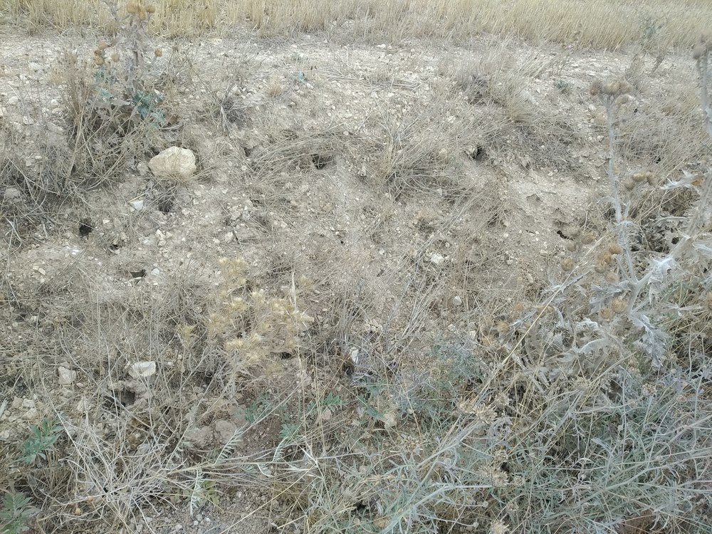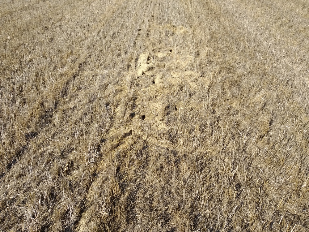 Santervás de la Vega (30/08/2019). Rastrojo de cereal con alta presencia de huras de topillos. Sí, en la comarca de Saldaña también hay muchos topillos.