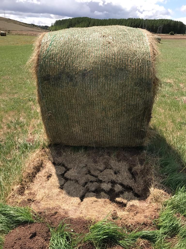 Santillana de Campos (30/08/2019). Alfalfa infestada de huras de topillos. Al fondo se pueden ver dos cajas nido.