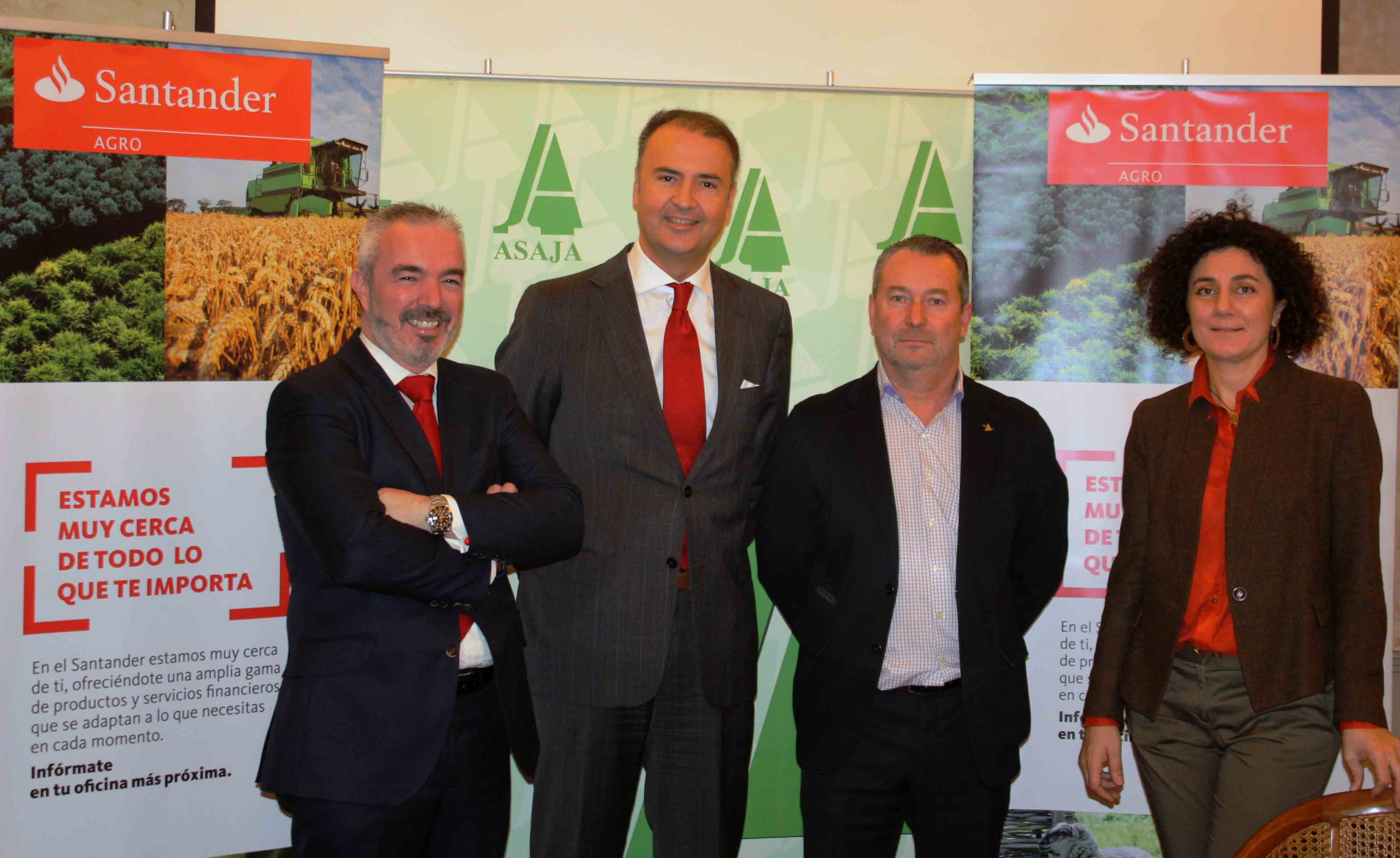 Pie de foto: En la firma del acuerdo han participado por Donaciano Dujo, presidente de ASAJA de Castilla y León; Nuria Ruiz Corral, gerente de ASAJA CyL; Oscar Calleja, Territorial de Castilla y León de Banco Santander y Carlos Seara, director de Negocio.