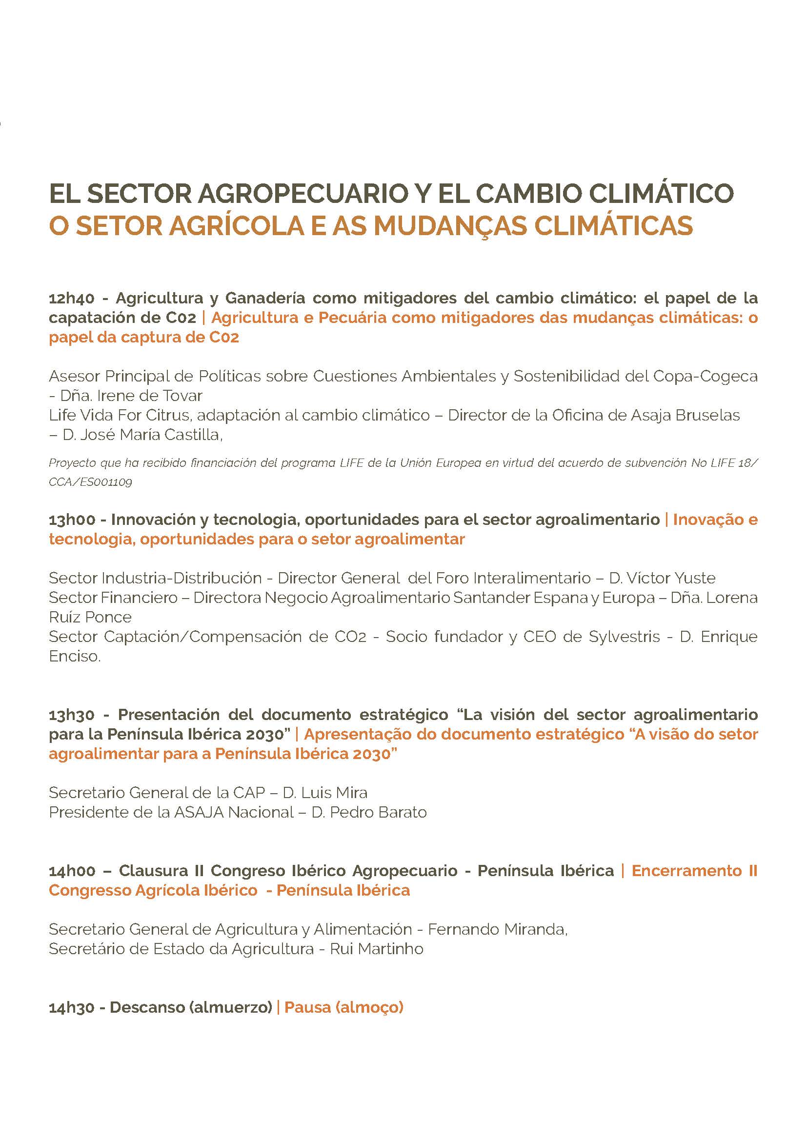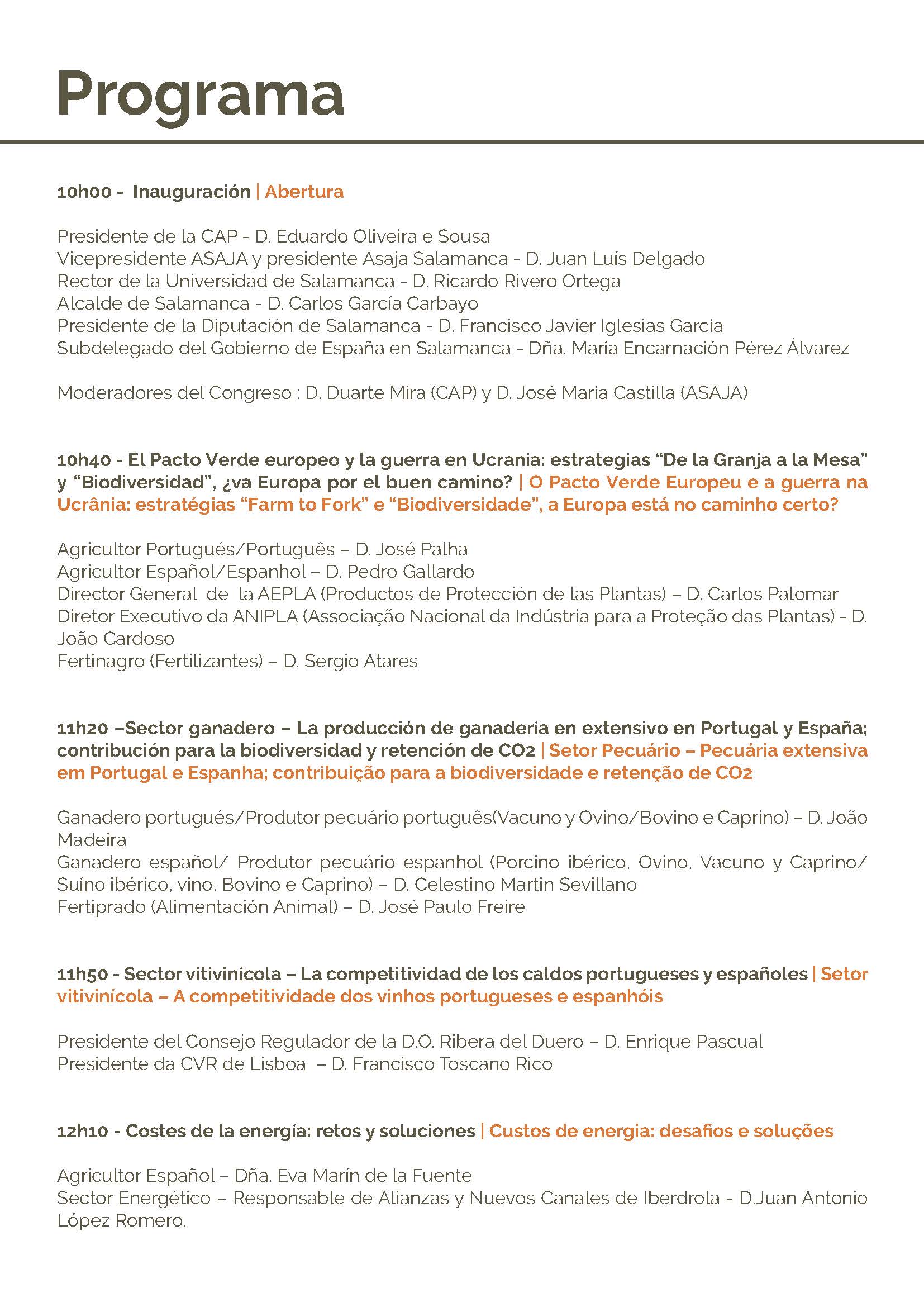 Como solución al problema del éxodo rural, el presidente de la CAP, Eduardo Oliveira, propuso el fomento de la actividad agraria y ganadera y la unión entre España y Portugal ya que «Iberia es solo una». Y ante las críticas hacia el sector del regadío, Oliveira insistió en que se utiliza el 80 % de los recursos pero no de la totalidad, sino del 20 % de la concesión a éstos. “Cuando se habla de que en la agricultura se derrocha es mentira, el agua se usa”,