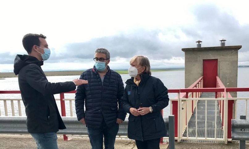 La presidenta del Organismo, Cristina Danés, comprobó el 28 de abril in situ los avances de los trabajos llevados a cabo en el embalse, que complementan otras actuaciones en infraestructuras y mejoras hidráulicas realizadas por la CHD; como la rehabilitación del canal existente entre el azud de Villagonzalo y la Central Principal de Bombeo, la instalación de dos nuevas bombas de impulsión en esta Central, el recrecido del Ramal I del Canal Oeste, así como las infraestructuras para el suministro eléctrico a la nueva zona regable.
