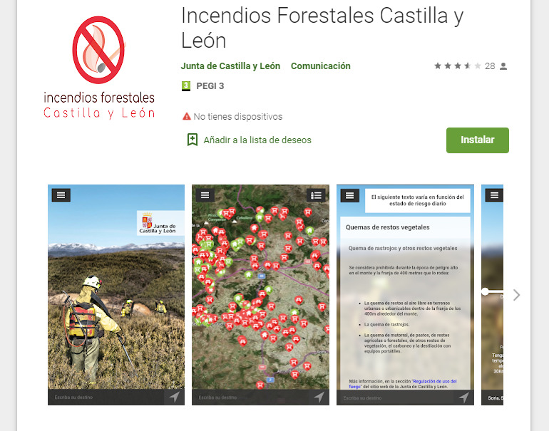 Además, proporciona recomendaciones generales para las actividades que pueda llevar a cabo el usuario en el medio natural y avisa del riesgo de incendios previsto para el día de su salida. La aplicación es gratuita y está disponible para su descarga en los siguientes enlaces de Google Play y Apple Store, con el nombre ‘Incendios Forestales Castilla y León’: