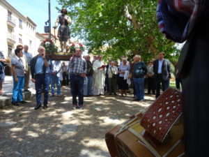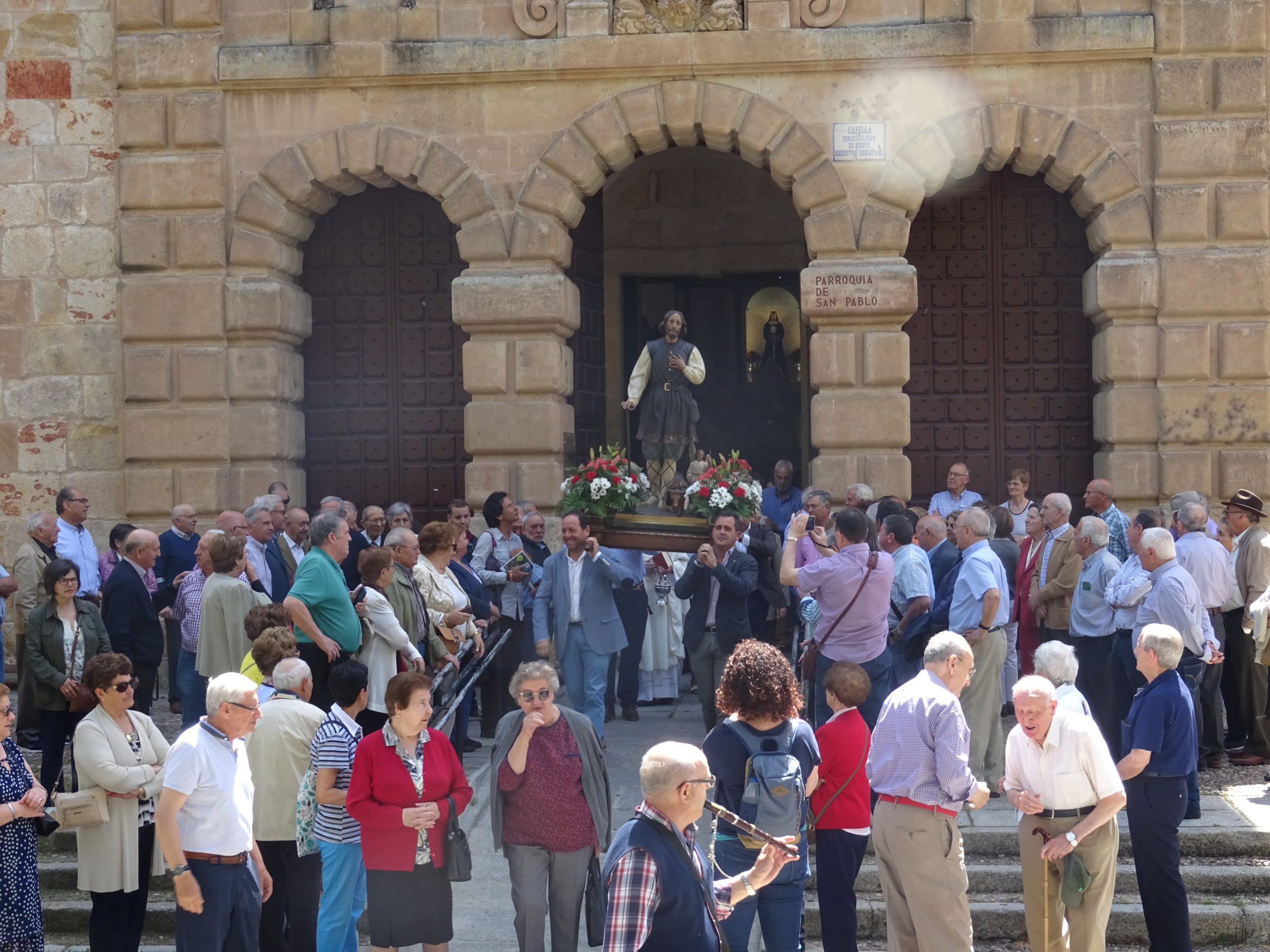 Posteriormente y tras la tradicional misa, tanto Delgado como el vicepresidente II, Julián Juanes, portaron la imagen del patrón para sacarla en procesión por los jardines de Colón. Cedieron el testigo al resto de devotos y acompañaron al santo al ritmo de flauta y tamboril, donde también se presenció el baile típico, la jota charra.