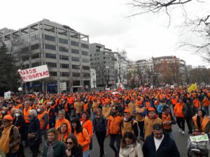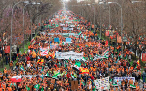 Todas las previsiones de participación se han superado en la manifestación que ya podemos calificar de histórica de agricultores, ganaderos y otros colectivos vinculados al medio rural, como los cazadores, que el domingo, 20 de marzo, recorrió las calles de Madrid. Kilómetros de participantes, procedentes de toda España y en concreto de las nueve provincias de Castilla y León, en una marea que colapsó el centro de la capital de España y que apenas pudo avanzar por su magnitud. En cabeza decenas de tractores, en ellos varios de provincias de Castilla y León, de una protesta que reunió cerca de 500.000 personas, de las que aproximadamente 30.000 proceden de las nueve provincias de nuestra Comunidad Autónoma, según los cálculos de las organizaciones convocantes, estimando el número de autocares fletados, a los que hay que sumar cientos de vehículos particulares. De hecho, solo en Salamanca había 3.000 personas inscritas.