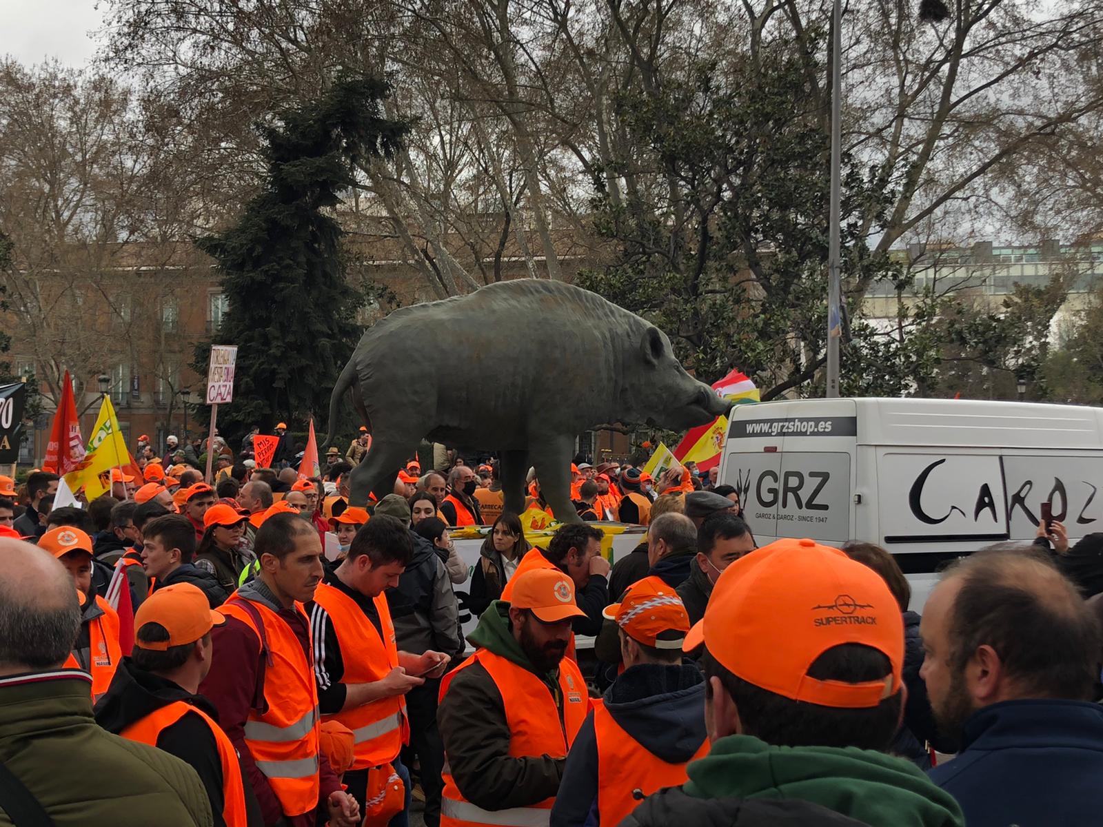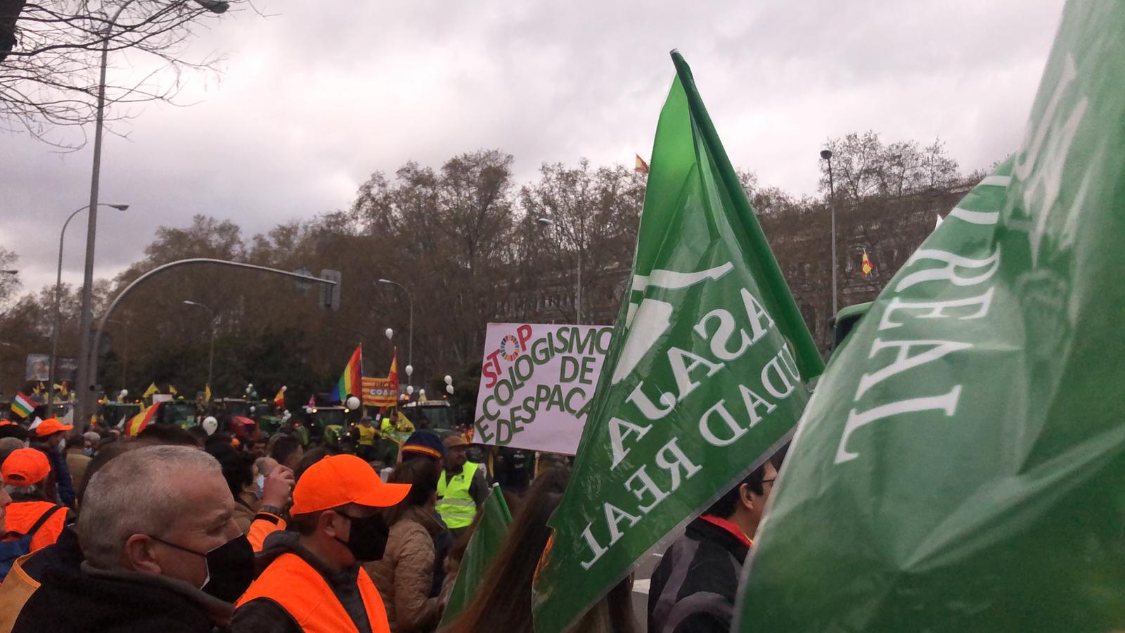 El lema de la pancarta que encabeza la protesta es “Juntos por el campo, por un mundo rural vivo”. El momento crítico que vive el campo ha quedado patente en la contundente respuesta de los profesionales a la convocatoria de las organizaciones profesionales agrarias ASAJA, COAG, UPA, las cooperativas, las comunidades de regantes, las asociaciones de cazadores y criadores de lidia, entre otros colectivos representativos.