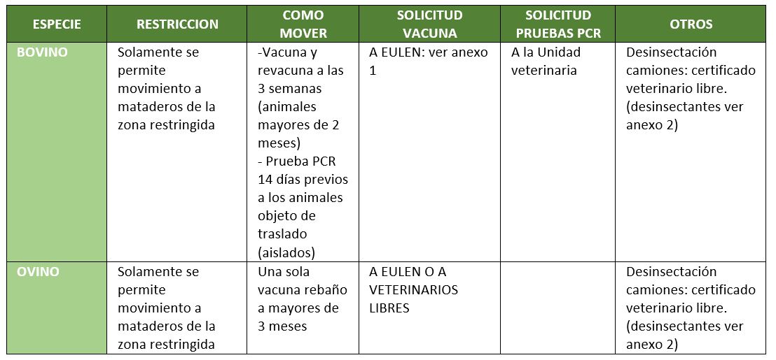 Los animales de la zona restringida (Ciudad Rodrigo, Lumbrales, La Fuente de San Esteban, Tamames y Sequeros) por el foco declarado de Lengua Azul en ovino solo podrán moverse a mataderos, según la Junta de Castilla y León. Además, los camiones que acudan a los mataderos incluidos en la zona de restricción deberán desinsectarse antes de su vuelta a origen.