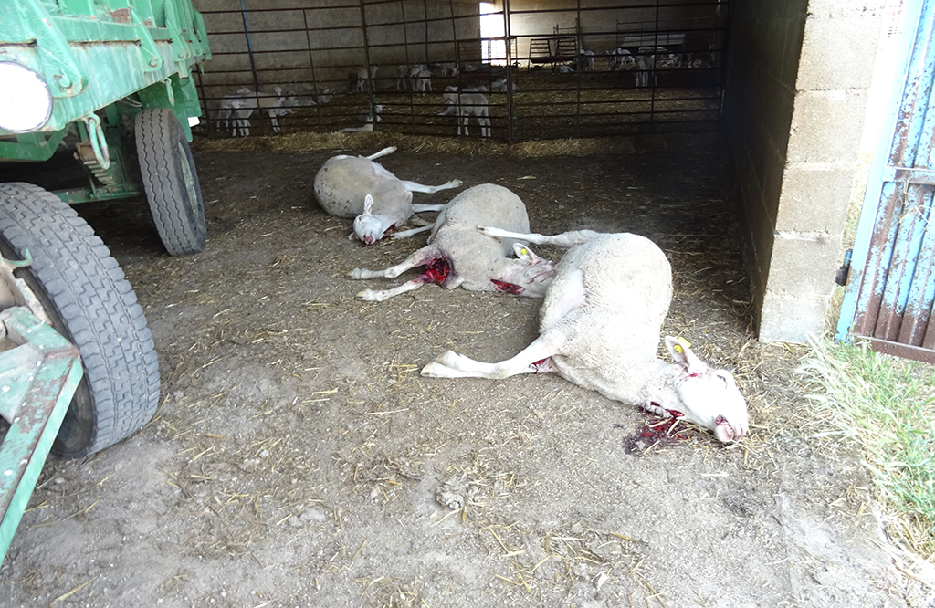 Los ganaderos Feliciano y Juan Francisco Vicente aseguran que al trasladarse a la finca esta mañana no encontraron a las 150 ovejas de las que se compone la explotación “sólo vimos a las tres muertas”. “El resto, nerviosas y desperdigadas.  De hecho, algunas estaban, por caminos y fincas, hasta casi tres kilómetros del ataque”. Aún no han reparado en cuantos ejemplares faltan pero los cadáveres de las tres reproductoras presentan mordidas en el cuello, la cara y ubres, según ha podido comprobar esta organización.