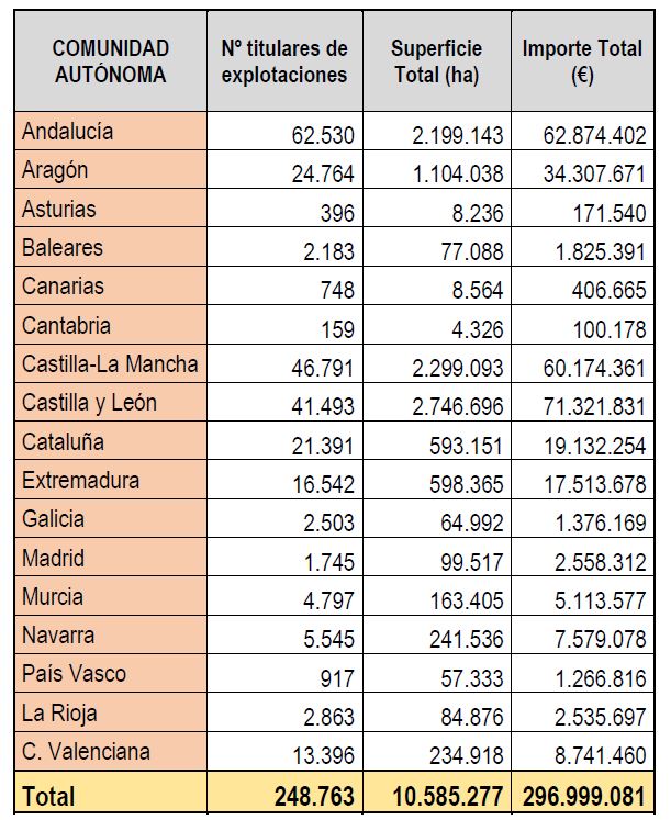 Finalmente, se ha establecido un importe unitario de 20’82 euros por hectárea para el secano; y 52’06 euros, para el regadío. Para el cobro de la ayuda, el importe a percibir debe ser igual o superior a los 200 euros, y hasta un máximo de 300 hectáreas por beneficiario, en las que se priorizará la superficie en regadío. Está previsto que los beneficiarios que cumplen con las condiciones establecidas para acceder a esta ayuda y que no han presentado alegaciones puedan percibir estas ayudas antes de que finalice el mes de abril, al objeto de que puedan contar con estos apoyos de cara al abonado de cobertera.