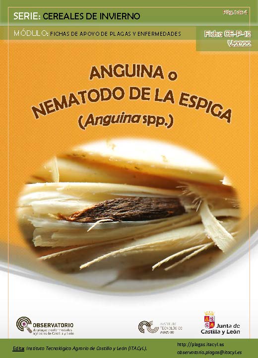 El Instituto Tecnológico Agrario de Castilla y León (Itacyl) ha recomendado la vigilancia de las parcelas destinadas a cereal ya que se han detectado dos focos de agallas (gusanos) en las espigas, en las provincias de Valladolid y Palencia. El Itacyl solicita que, de encontrarse con estos nematodos, los agricultores lo comuniquen a la mayor brevedad al Observatorio (observatorio.plagas@itacyl.es) o en la dependencia más próxima del Servicio Territorial de Agricultura, Ganadería y Desarrollo Rural (Sección de Sanidad y Producción Vegetal, Sección Agraria Comarcal o Unidad de Desarrollo Agrario).