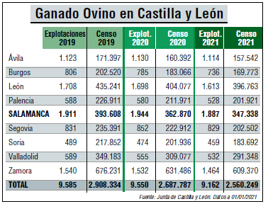 En 2021, la provincia charra cuenta con 347.338 ovejas de 1.887 explotaciones. Mientras que en 2019, el censo acumulaba 393.608 ejemplares pertenecientes a 1.911 productores. Según datos del Observatorio de Precios de Castilla y León la rentabilidad han ido a la baja desde