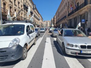 Este 24 de marzo se clava en el calendario por ser el día en que tres tractores encabezaron la marcha de una caravana de coches sin igual. Escoltados por la Policía Nacional, marcaron el rumbo de 500 vehículos; en fila de a dos, salieron del aparcamiento de Madres Bernardas poco después de las doce de la mañana. Recorrieron la avenida de la Aldehuela, paseo de Canalejas, plaza España, avenida Mirat y plaza Puerta Zamora, para retornar por Mirat y bajar Gran Vía hasta la Subdelegación del Gobierno de España en Salamanca.