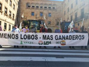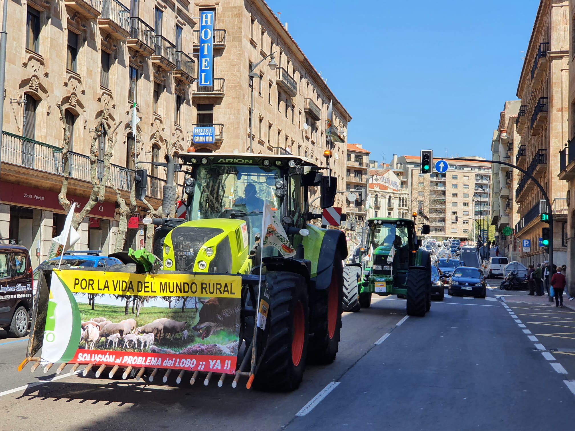 No obstante, este 24 de marzo se concentraron en el tema del lobo. Las organizaciones lo dejaron claro, no quieren acabar con la especie; quieren que no se expulse a los habitantes del medio rural y su economía por tener que cerrar las explotaciones ante las millonarias pérdidas que supone soportar los daños del lobo. Quieren seguir viviendo en los pueblos. Quieren seguir produciendo para nosotros (no nos olvidemos que les necesitamos, al menos, tres veces al día). Quieren que Castilla y León y, concretamente Salamanca, no tenga que acarrear con el peso de los miles de lobos que hay en esta comunidad y que se expandirán, colonizando estos territorios, en un hábitat que no es el suyo; un hábitat que no tiene presas para su alimentación, por lo que cargan contra la ganadería y con el miedo y la desazón que sufren todos los habitantes del medio rural. ¿Y a dónde van a venir y dónde van a criar más? Salamanca, que tiene más de 600.000 cabezas de ganado vacuno y otras tantas ovejas y cochinos ibéricos en extensivo; es decir, una prominente despensa al aire libre.