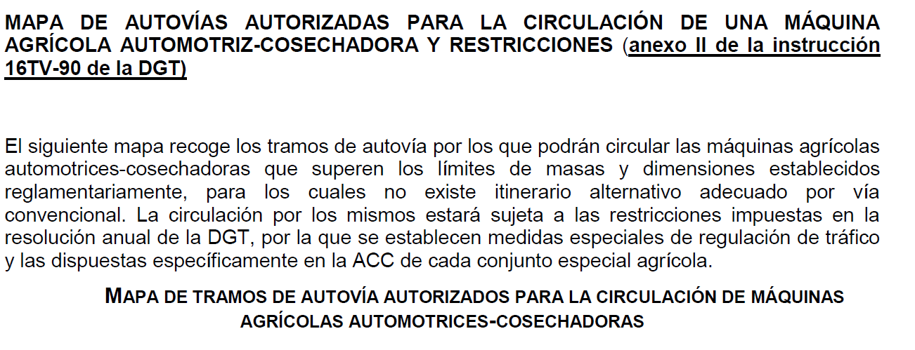 • Máquinas agrícolas automotrices- cosechadoras y sus conjuntos cuando: o Así conste expresamente en el itinerario específico de la ACC concedida.