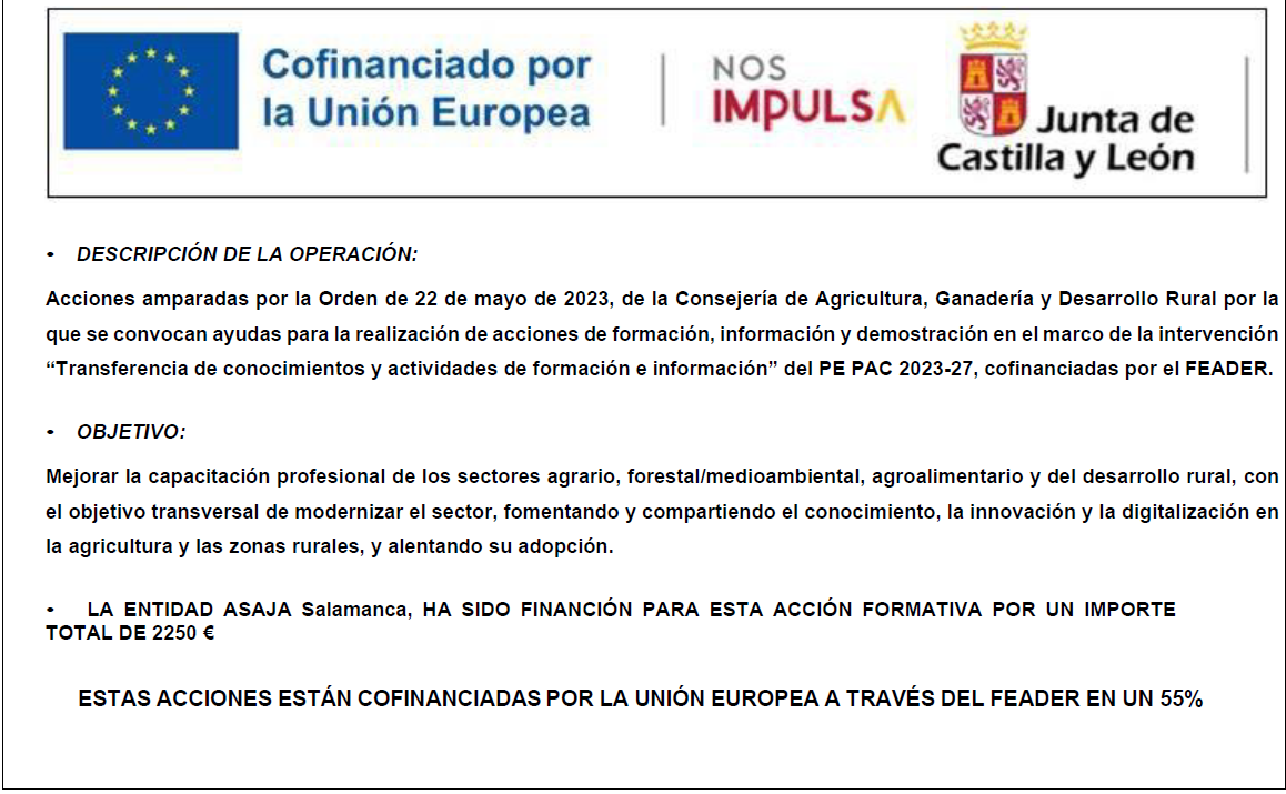 ASAJA Salamanca organizará un nuevo curso de manipulador de plaguicidas de uso fitosanitario, en nivel básico, del 10 al 15 de julio. Los interesados pueden dirigir sus solicitudes al correo electrónico asaja@asajasalamanca.com o marisa@asajasalamanca.com o llamando al 923.190.720, hasta el 7 de julio. Además, se podrán descargar la información del curso y la solicitud en los enlaces de abajo de estas líneas.