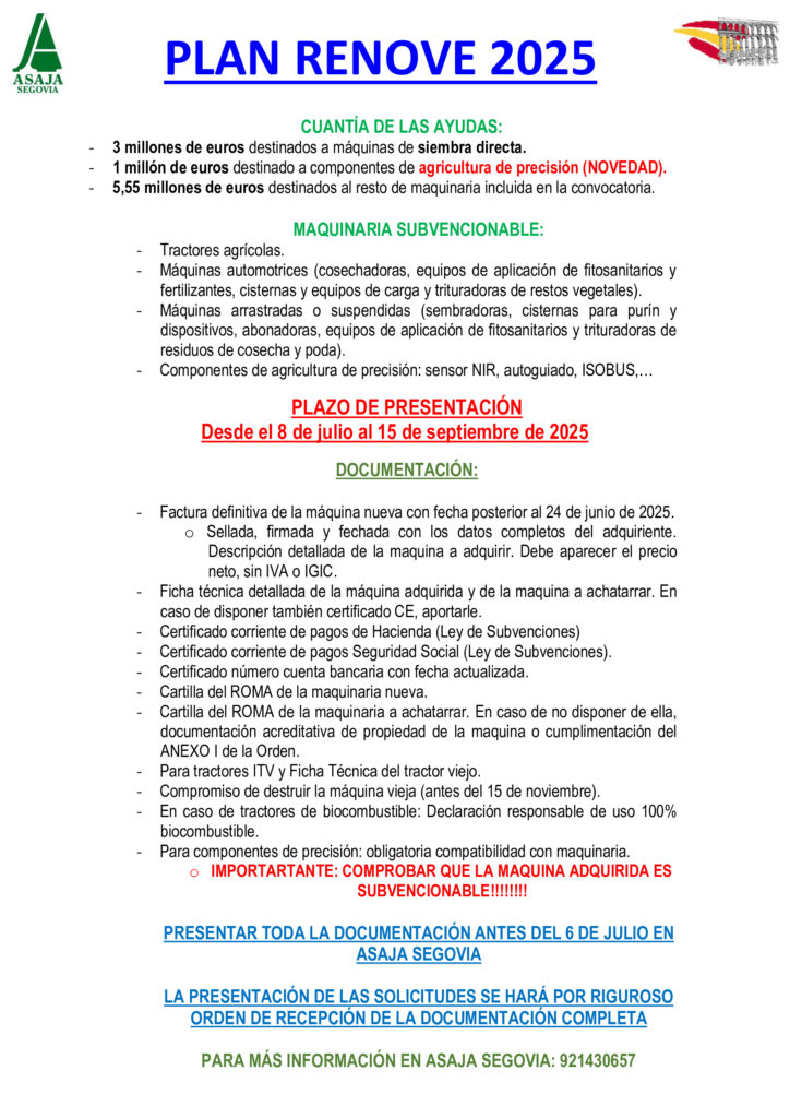 Inicio ASAJA Segovia informa PLAN RENOVE 2025