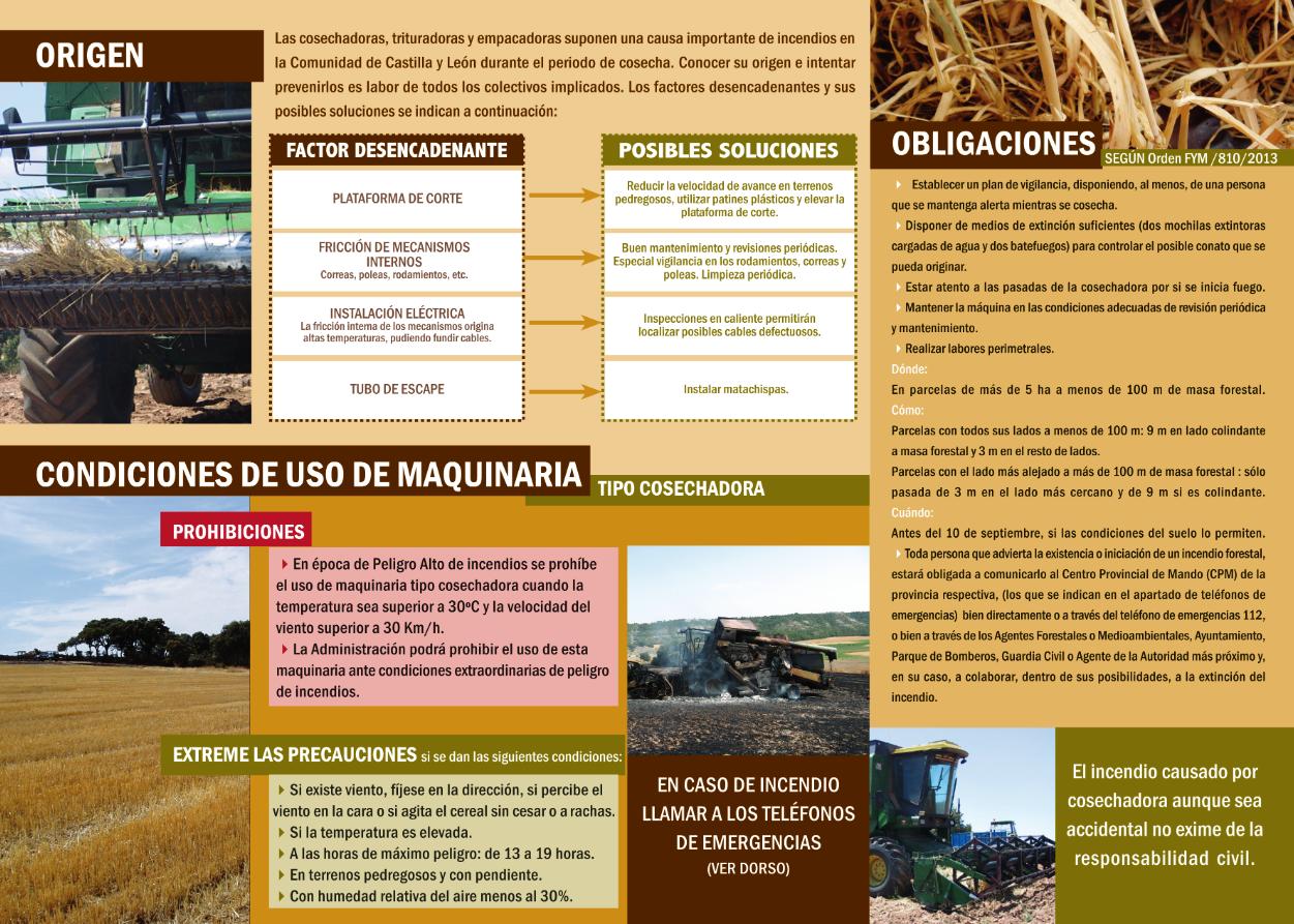 Dentro de la campaña para la reducción del riesgo de incendios forestales por cosechadoras, recogemos el folleto editado por la Consejería de Medio Ambiente con varias medidas para evitar siniestros.