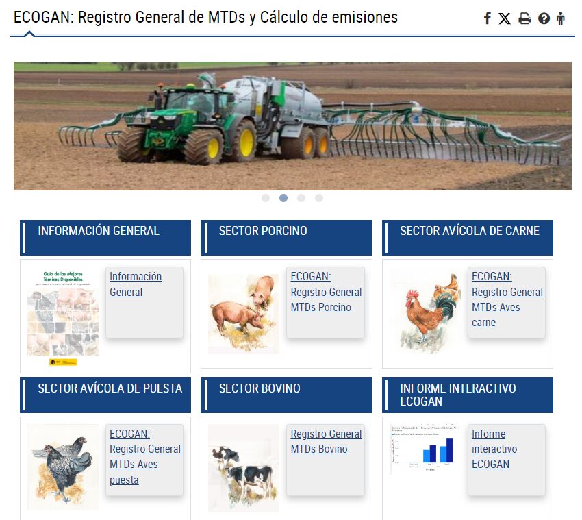 La herramienta Ecogan es un sistema informatizado desarrollado por el Ministerio de Agricultura, Pesca y Alimentación, en coordinación con el Ministerio para la Transición Ecológica y el Reto Demográfico, que permite registrar las mejores técnicas disponibles aplicadas en la granja, así como estimar las emisiones contaminantes y de gases de efecto invernadero y el consumo de recursos de una granja concreta a lo largo del proceso productivo.