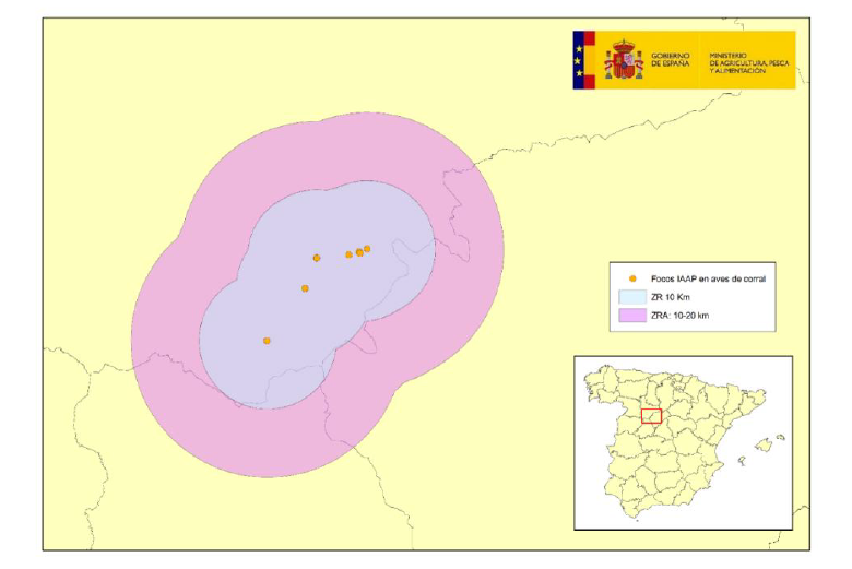 27 octubre 2025.- Desde la última actualización de la situación epidemiológica de la Influenza Aviar de Alta Patogenicidad (IAAP) H5 N1 en España, realizada el pasado 20 de octubre, y como medida de refuerzo para el control de la enfermedad ante la evolución de la situación epidemiológica de la enfermedad durante las últimas semanas, los Servicios Veterinarios Oficiales (SVO) de la Junta de Castilla y León, de acuerdo con el MAPA y la Comisión Europea, han decidido establecer una Zona de Restricción Adicional (ZRA) alrededor de la Zona de Restricción (ZR) hasta ahora implementada por la aplicación del Reglamento 687/2020. (Ver mapa adjunto)