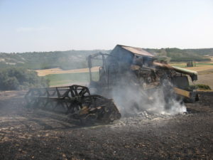 – Prohibición de los trabajos con maquinaria que puede generar chispas o deflagraciones en monte y en la franja de 400 metros que lo circunda, como son, entre otras, cosechadoras, empacadoras, desbrozadoras, etc.