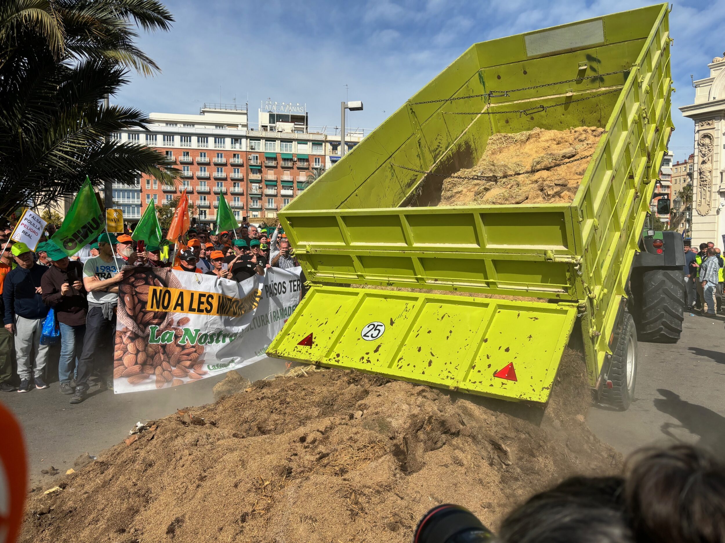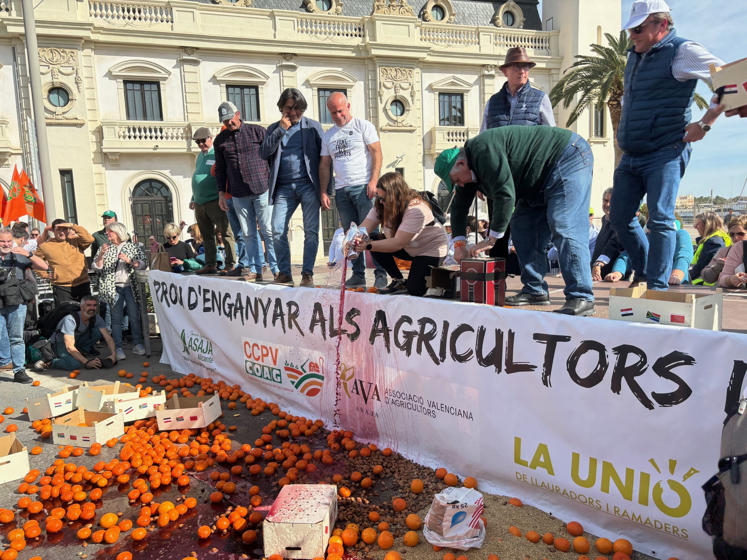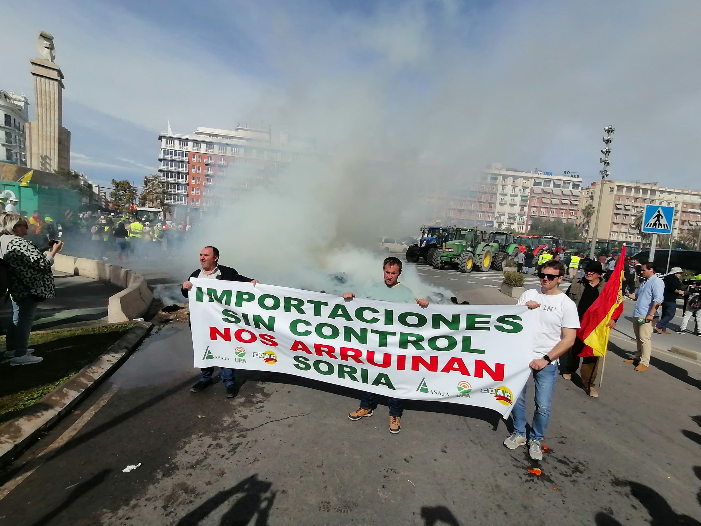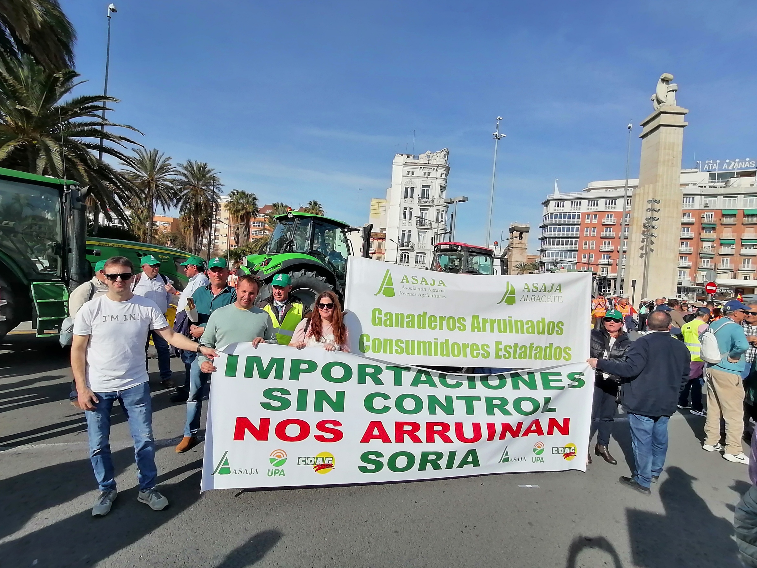 La organización profesional agraria ha portado una pancarta con el lema ‘Importaciones sin control nos arruinan’