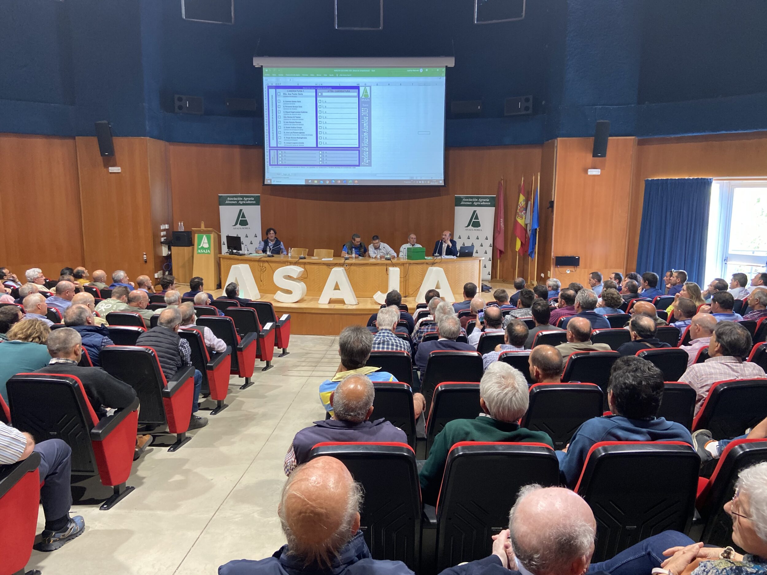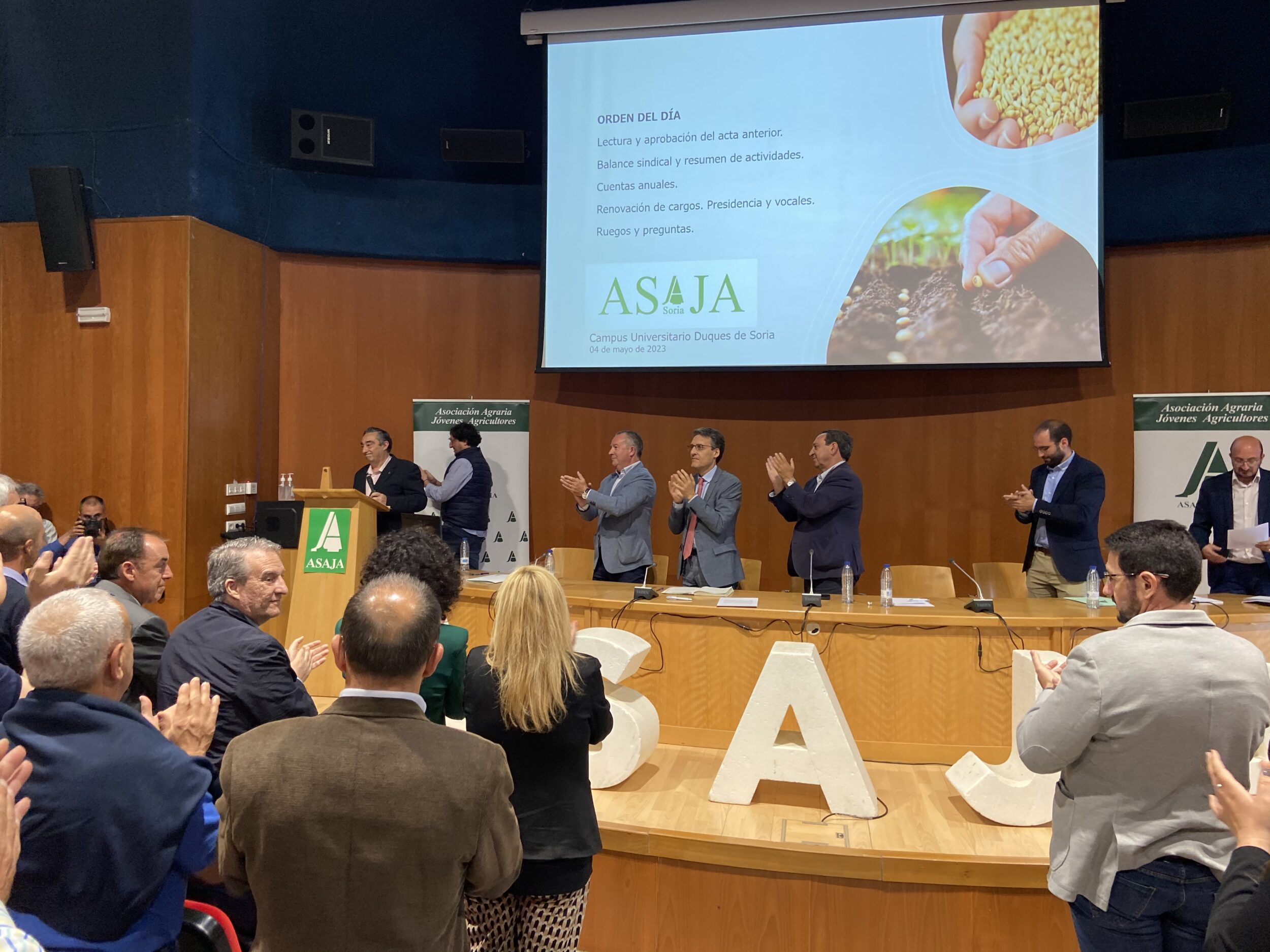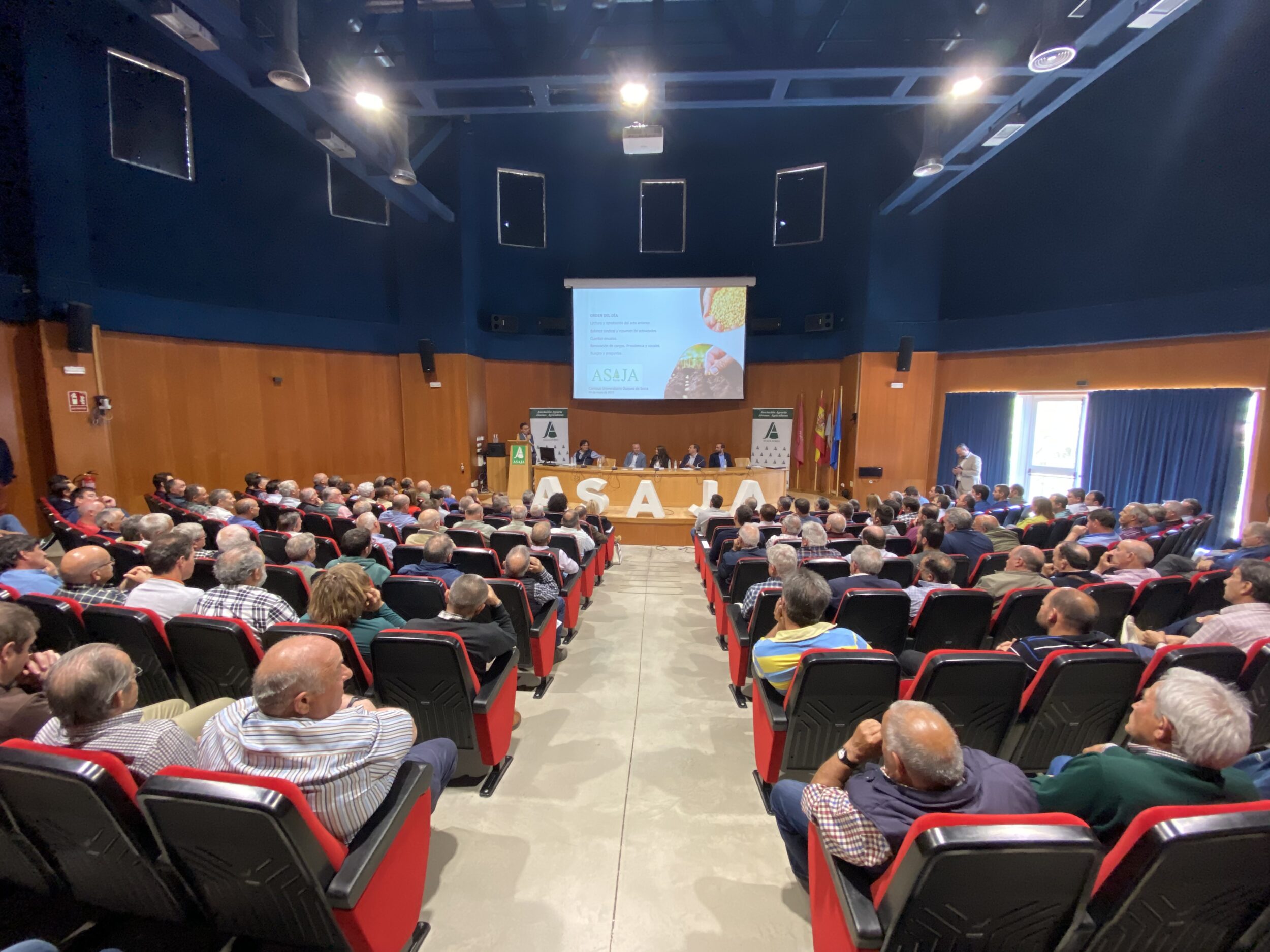 El Salón de Actos de la Escuela de Ingenierías Agrarias del Campus “Duques de Soria” se quedó pequeño para acoger a tantos socios que asistieron, dado además que este año había elecciones a la presidencia y que muchos también -incluidas autoridades, responsables de otras ASAJA y entidades diversas- quisieron acercarse a despedir a Carmelo Gómez después de cuatro legislaturas.