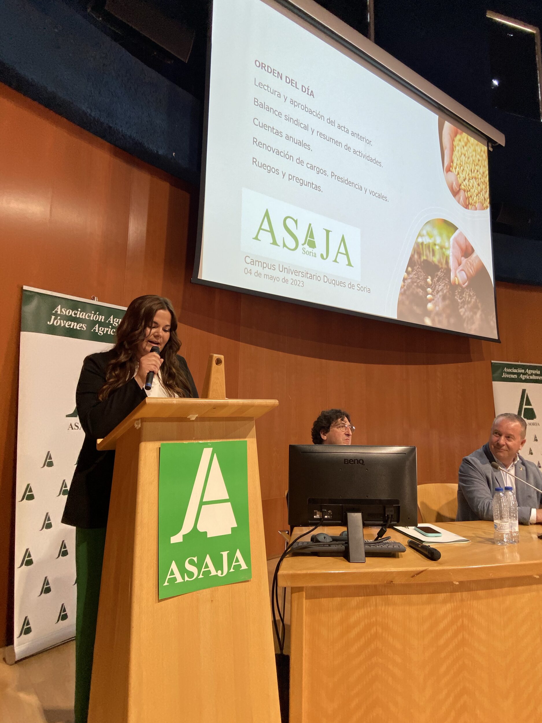 ASAJA Soria tiene nueva presidenta: Ana Pastor Soria. Así lo ratificaron en asamblea general ordinaria el jueves día 4 de mayo los socios de la organización con su respaldo masivo por aclamación a la única candidatura presentada, para sustituir de esta forma a Carmelo Gómez Sanz, quien deseó la mejor de las suertes a su sucesora, y fue el encargado de exponer el balance sindical y coordinar las tareas de votación, lectura de cuentas y ruegos y preguntas.