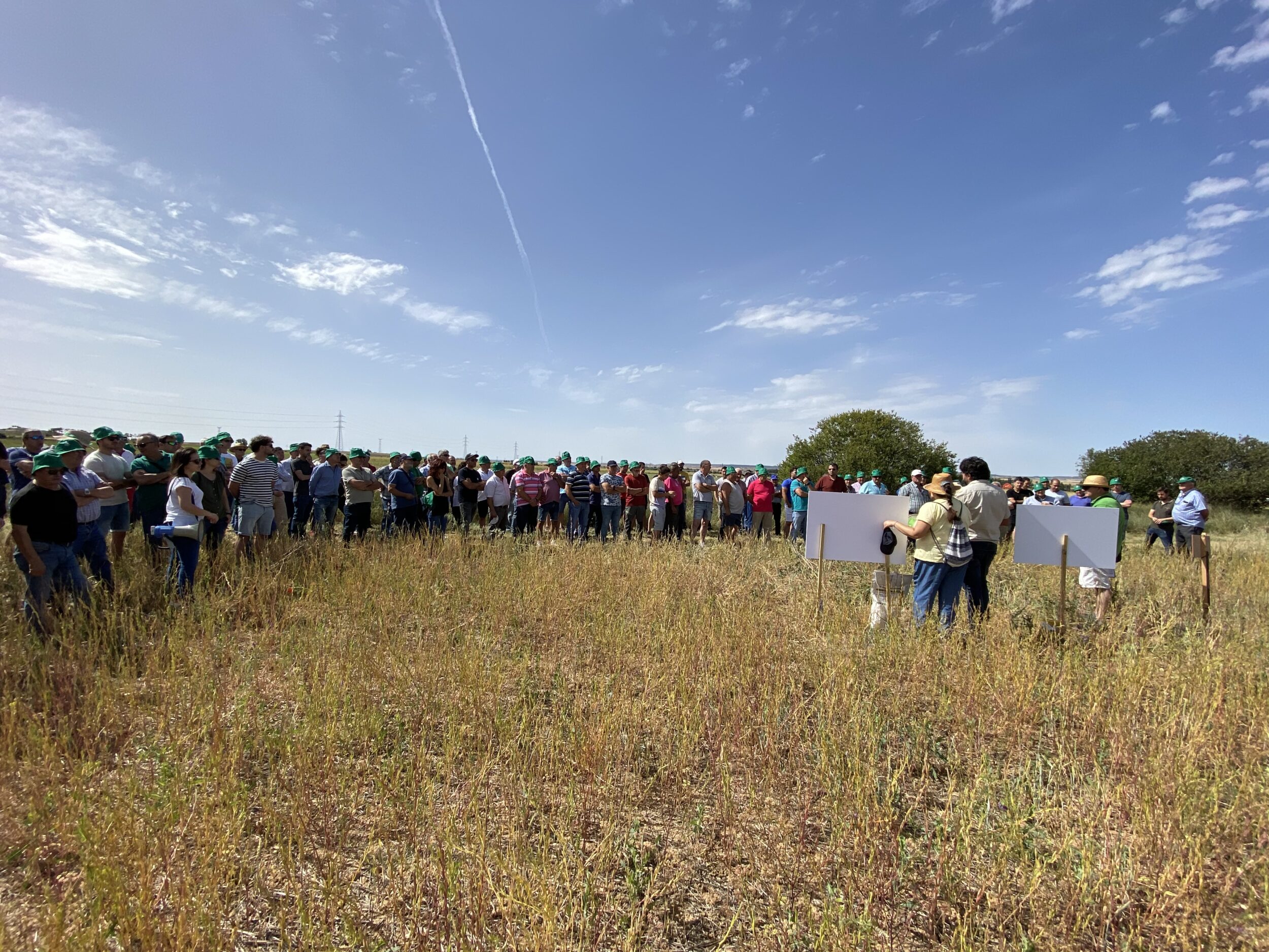 Lo que ya no pinta tan bien es la cosecha. En la visita a los campos de ensayo de Almazán del 21 de junio ya pudimos ver los estragos que genera la sequía en las producciones. A esto hay que añadir el desaforado precio de los insumos; especialmente el del gasóleo, por lo que protestamos enérgicamente el 23 a las puertas de la Compañía Logística de Hidrocarburos en Valladolid. Con este panorama del cereal en las fincas, imaginemos a otro sector económico soportando esta situación extrema, y es que el precio del gasóleo agrícola el año pasado por estas fechas se encontraba a 0,83 euros/litro, a la mitad que en la actualidad. La espiral de subida es imparable, ya que en el mes de febrero la cotización media estaba en 0,84 euros/litro, pero en abril ya se ha pagaba a 1,43 euros/litro. Lo cierto es que la situación actual no se puede aguantar por mucho tiempo más. Hace 15 días ya lo decía el presidente regional de ASAJA. Donaciano comentaba unas cifras ante los medios que entiende toda la sociedad: “Llenar el tractor cuesta 600 euros al día y las cosechadoras 1.600 todos los días. Es una barbaridad, insostenible, y esto no lo aguanta el campo”.