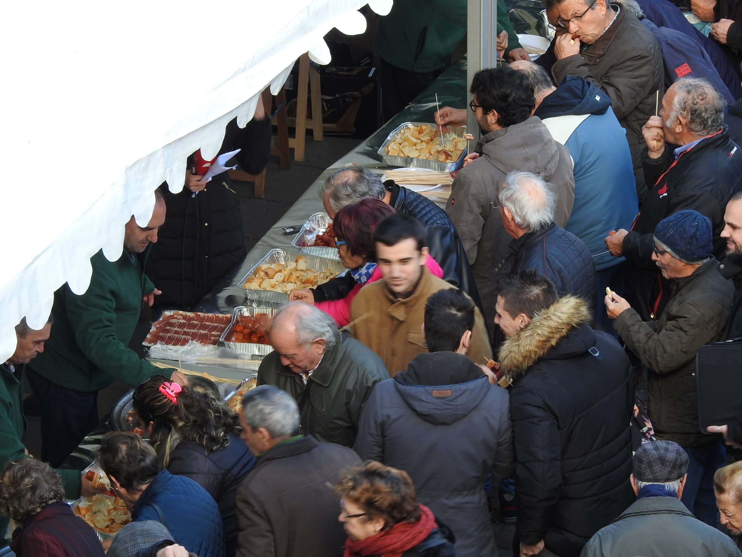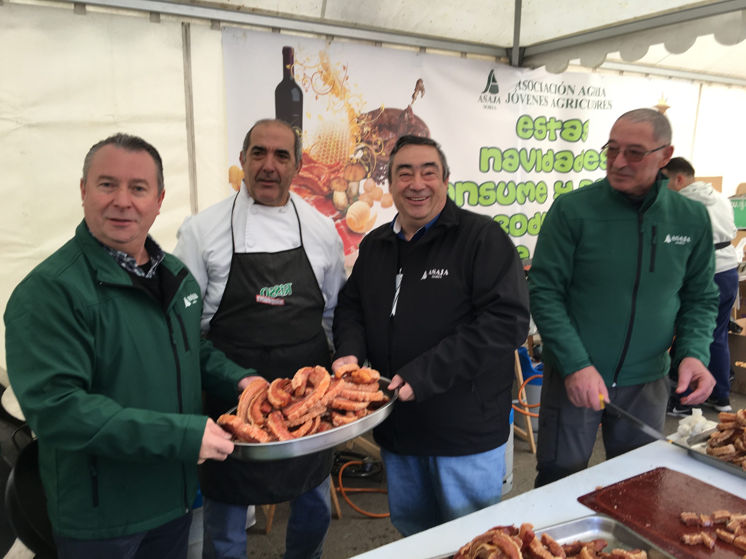 Así las cosas, con el lema específico ‘Éste es el verdadero fruto de nuestro esfuerzo y el orgullo de nuestra tradición. ¡Qué rico, qué bien huele!’, ASAJA Soria ha repartido en la Plaza Ramón Benito Aceña, también conocida como Plaza Herradores,unos 3.000 torreznos y más de 3.000 chorizos que se cocinaron allí mismo delante de los consumidores. Además, dos cortadores dejaron listas raciones de 25 jamones. Todo ello dentro de un ambiente festivo y navideño en lo que ASAJA Soria quería que fuese una gran degustación “in situ” para poner en valor el impulso, la excelente calidad de las producciones y la importancia que tiene el sector agrario en general para la provincia.