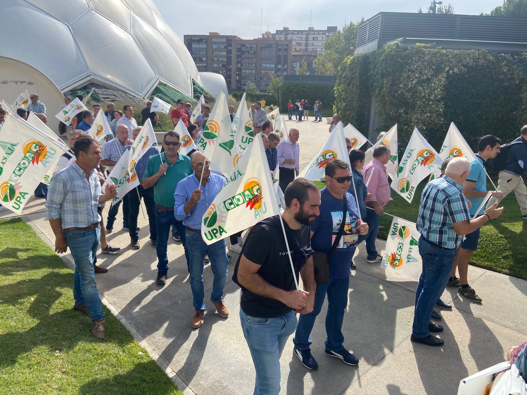 La comitiva de la organización profesional agraria provincial, encabezada por la vicepresidenta, Ana Pastor, y el secretario general, Alejandro Aguado, protestó contra «la subida escandalosa de los insumos de todo tipo está llevando al límite a los agricultores y ganaderos con el riesgo real de que esta situación provoque el desabastecimiento de alimentos en las superficies comerciales al no poder asumir las explotaciones familiares los elevadísimos gastos para ponerse a producir alimentos«.