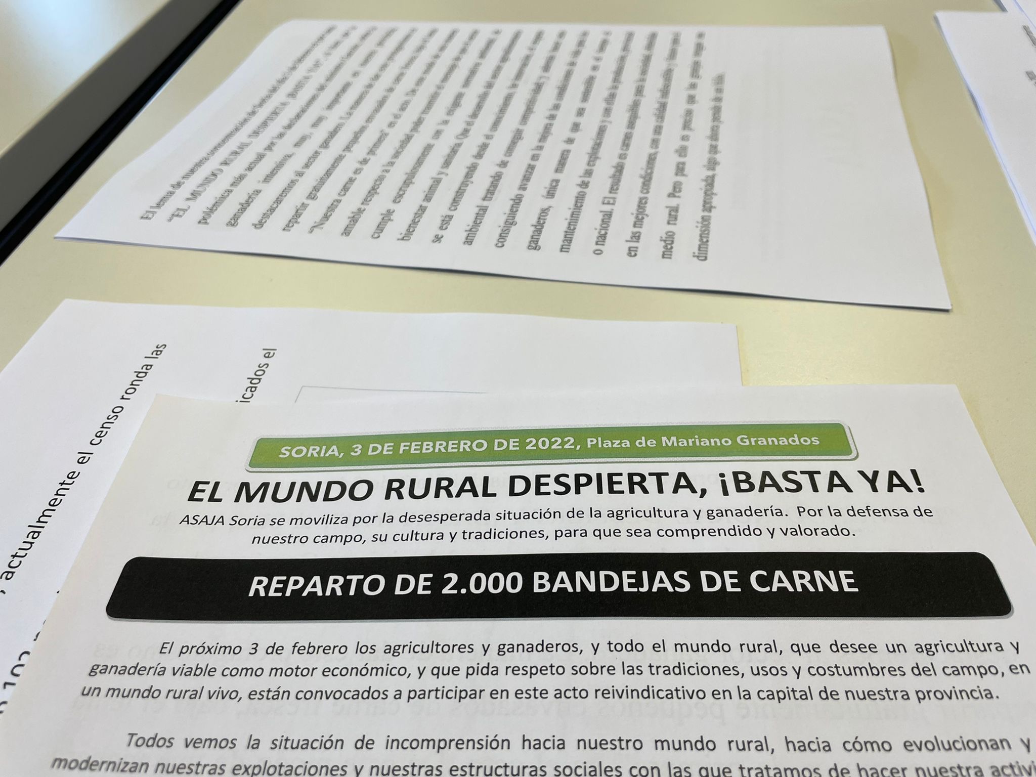 ASAJA Soria repartirá el próximo 3 de febrero, en la céntrica plaza Mariano Granados de Soria capital, 2.000 bandejas de carne para pedir respeto por el sector agrícola y ganadero, con una concentración englobada en el lema: ‘El mundo rural despierta, ¡basta ya!’.