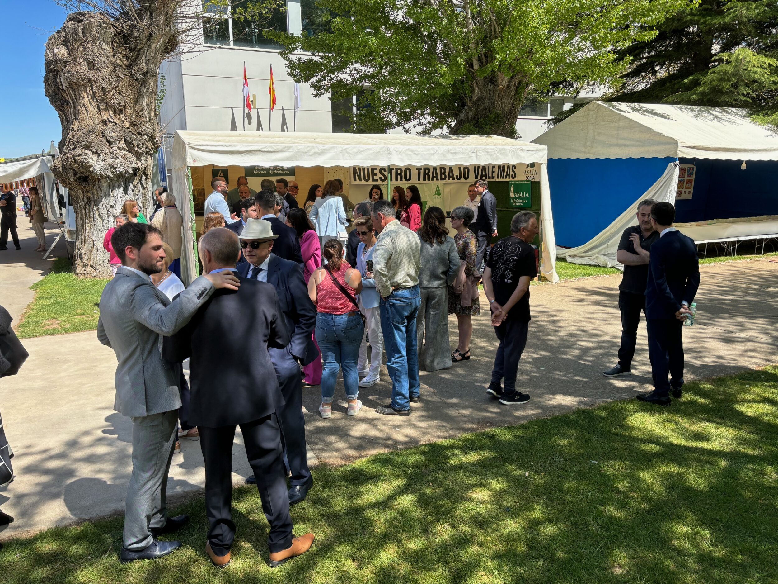 ASAJA Soria, como siempre y desde el principio, fiel a sus raíces, con los profesionales unidos, sigue y seguirá apoyando a la Feria de Almazán. Una vez más, cuenta con una caseta, que sirve de punto de encuentro y facilita que los profesionales coincidan de nuevo, que compartan inquietudes y experiencias. Es un elemento vertebrador que ofrece visibilidad al sector agrícola. Además, el stand es también una referencia que ha servido como eje de la reivindicación para el campo; para todas las reivindicaciones que afectan al día a día de esta esencial y bella profesión.