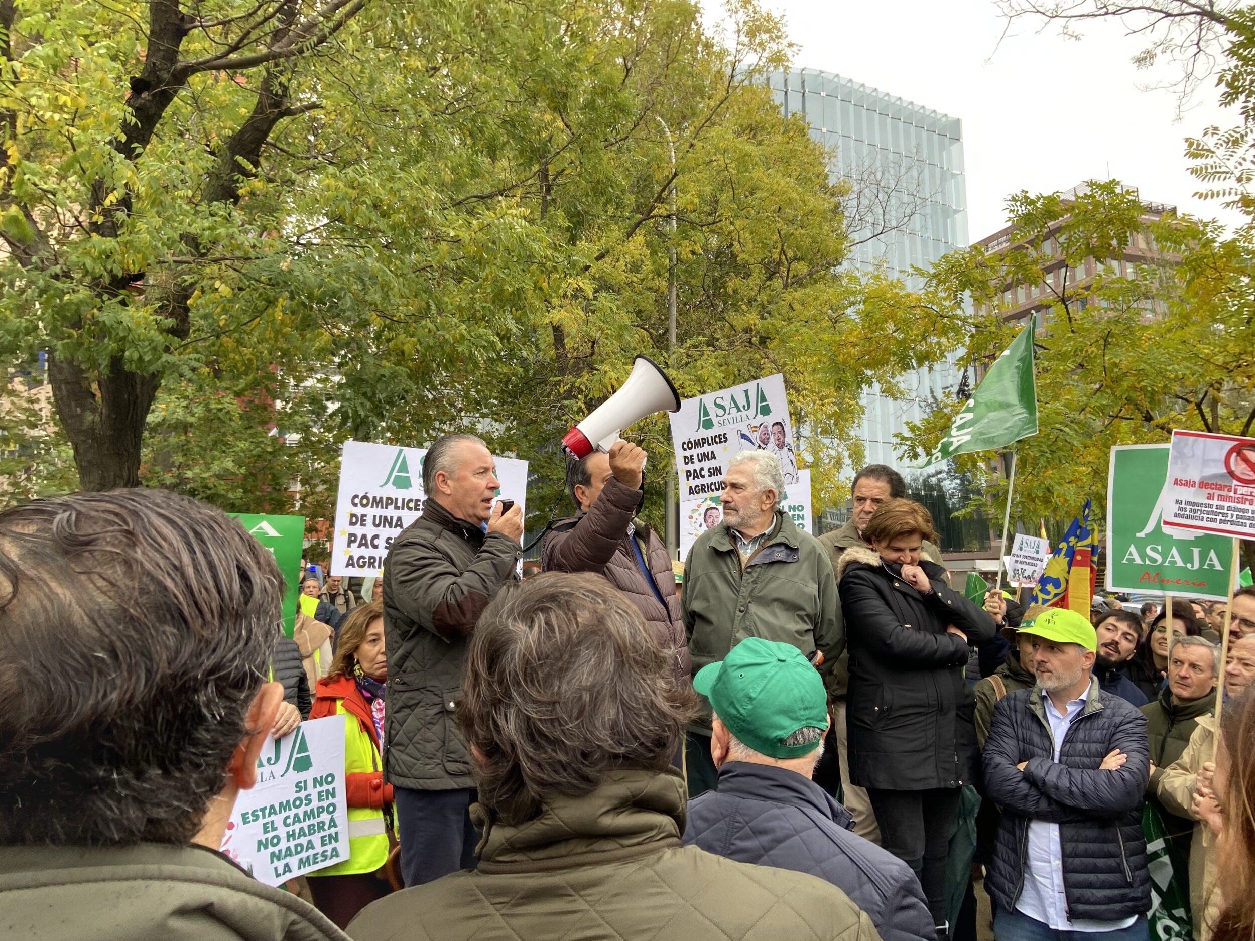 “El 1 de enero tendremos que tragar con una PAC diseñada por burócratas que excluyen de sus propuestas la opinión de los auténticos productores de alimentos, sin entender que no hay sostenibilidad posible si no se garantiza rentabilidad para los agricultores y ganaderos”, ha subrayado Donaciano Dujo, presidente de ASAJA Castilla y León, que también ha asistido a la protesta.