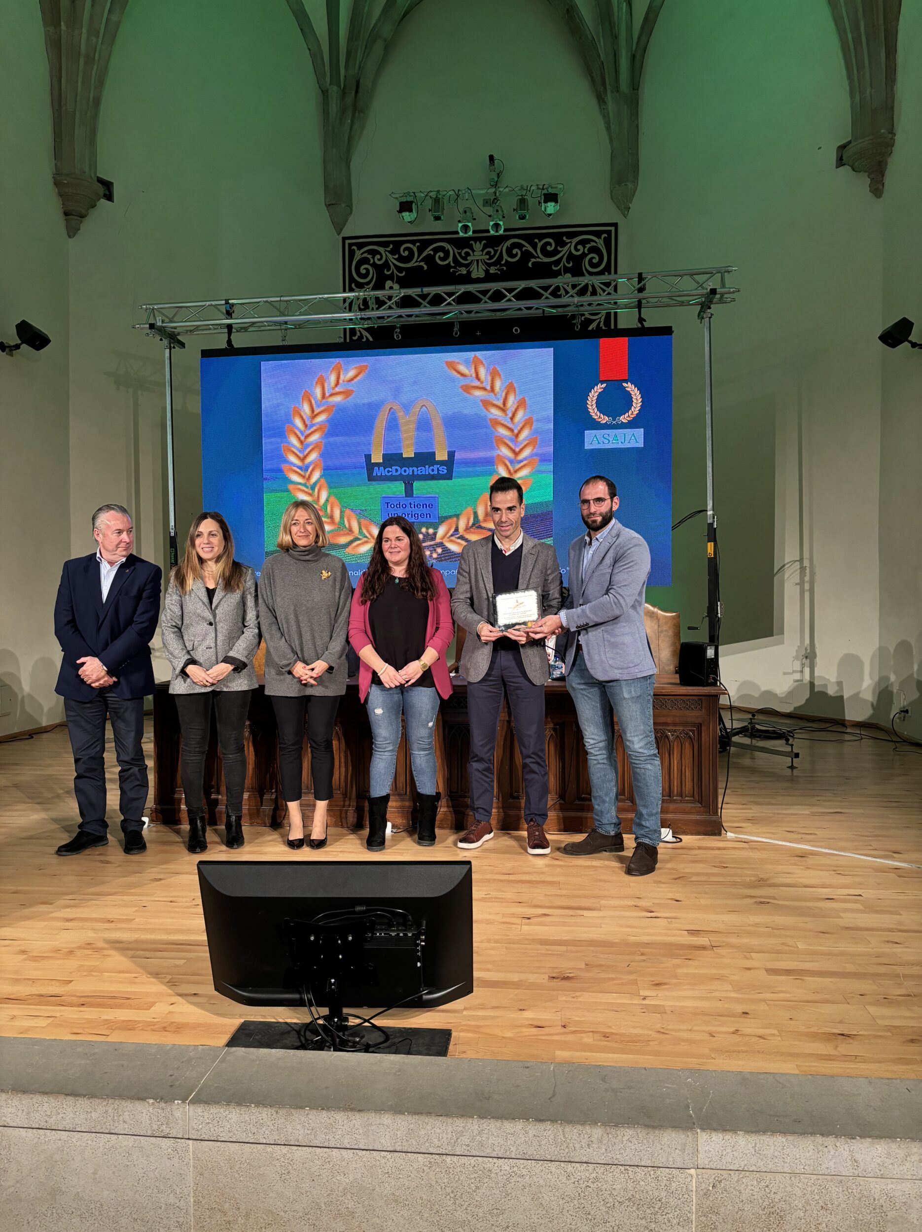 Por la multinacional, con más de 40.000 restaurantes en unos 100 países del mundo, acudieron a recibir el premio Paloma Cabral, directora corporativa; Rocío Holgado, brand manager; y Rafael Jiménez, franquiciado de McDonald’s Soria. Tuvieron palabras de agradecimiento y reconocieron que era un honor recibir el premio precisamente del sector que se dedica a elaborar esos alimentos que luego pueden disfrutar todos los clientes. Confesaron, a la vez, que se ha apostado con enorme ilusión por esta campaña, que pone en el lugar principal que se merece al campo y porque es una forma de dar visibilidad a que la compañía respeta los tiempos necesarios a la hora de producir alimentos de calidad que luego utiliza como ingredientes de sus menús.