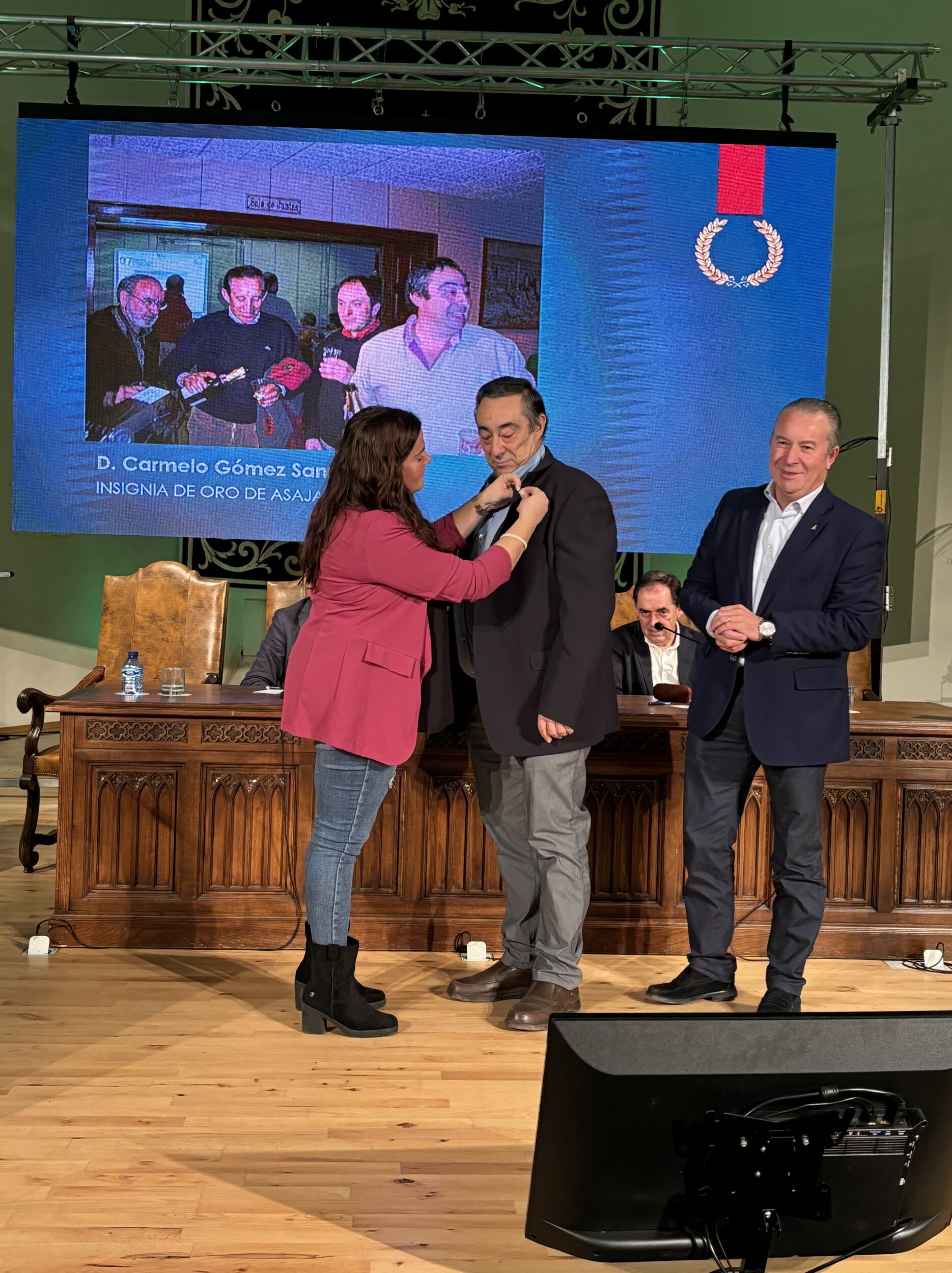 Por otra parte, la Junta directiva, de forma extraordinaria, decidió unánimemente, editar y entregar la primera insignia de oro de la organización a Carmelo Gómez Sanz como reconocimiento a la dedicación hasta el momento en ASAJA Soria. Tras 16 años en la presidencia, en mayo decidió dar un paso a un lado al frente de la organización profesional agraria más importante de la provincia; algo a lo que también él ha contribuido de forma muy notable al frente de un grupo de agricultores, ganaderos y técnicos.