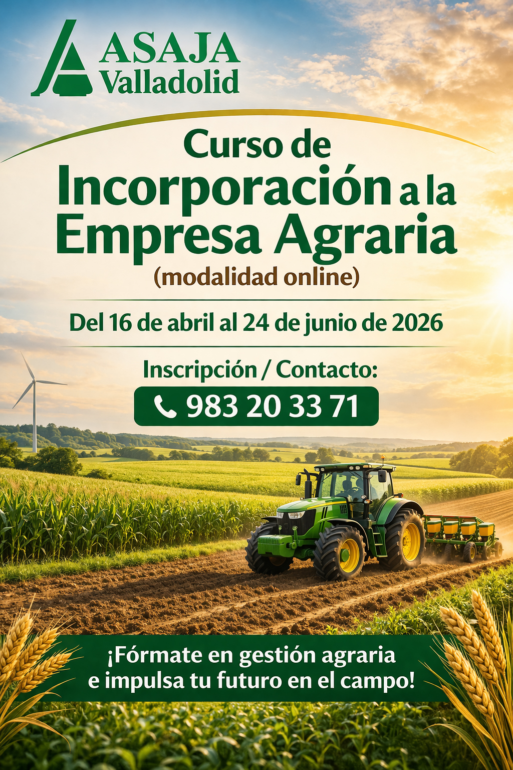 Inicio ASAJA Valladolid lanza un nuevo Curso de Incorporación a la Empresa Agraria en modalidad online Cartel-curso-actualizado