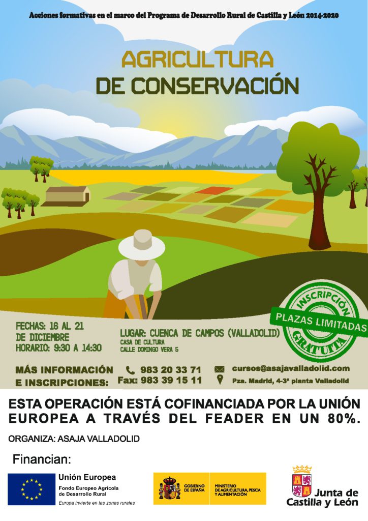 ASAJA Valladolid organiza del 16 al 21 de diciembre en Cuenca de Campos (Valladolid) un curso gratuito de Agricultura de Conservación en una operación cofinanciada por la Unión Europea a través del FEADER en un 80%.