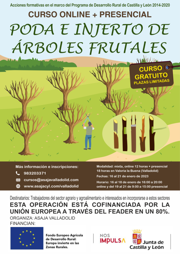 ASAJA Valladolid organiza un curso de poda e injerto de árboles frutales en una operación cofinanciada por la Unión Europea a través del FEADER en un 80%.