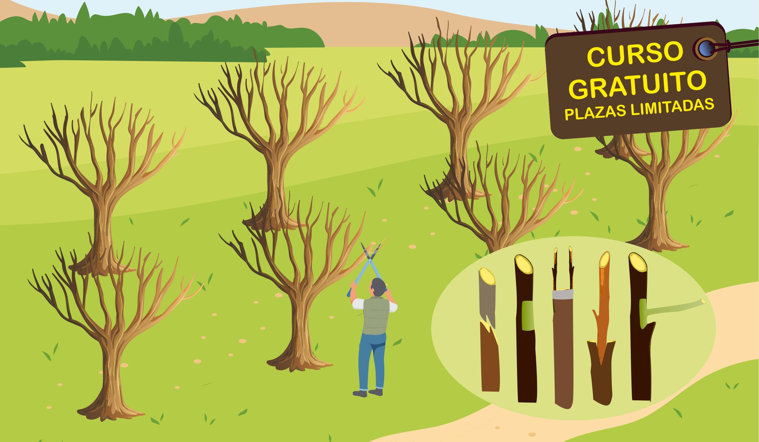 La finalidad de esta propuesta es la impartición de un curso teórico/práctico sobre la poda e injerto de árboles frutales y frutos secos. La poda e injerto de los árboles, son de las operaciones más importantes y necesarias en el área de la producción de frutales y frutos secos, que es practicada con frecuencia y se lleva a cabo de forma rutinaria, a veces sin el conocimiento adecuado para sacar el mejor provecho y respetar las cualidades del propio cultivo. Se debe por tanto adquirir una formación sólida para realizar estas operaciones de cultivo en árboles frutales y frutos secos.