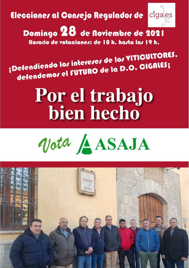 Por todo ello, te pedimos el voto para los candidatos de ASAJA, para así mantener la mejora de las explotaciones vitivinícolas y poder aumentar el prestigio de la D.O. Cigales y la calidad de sus vinos.